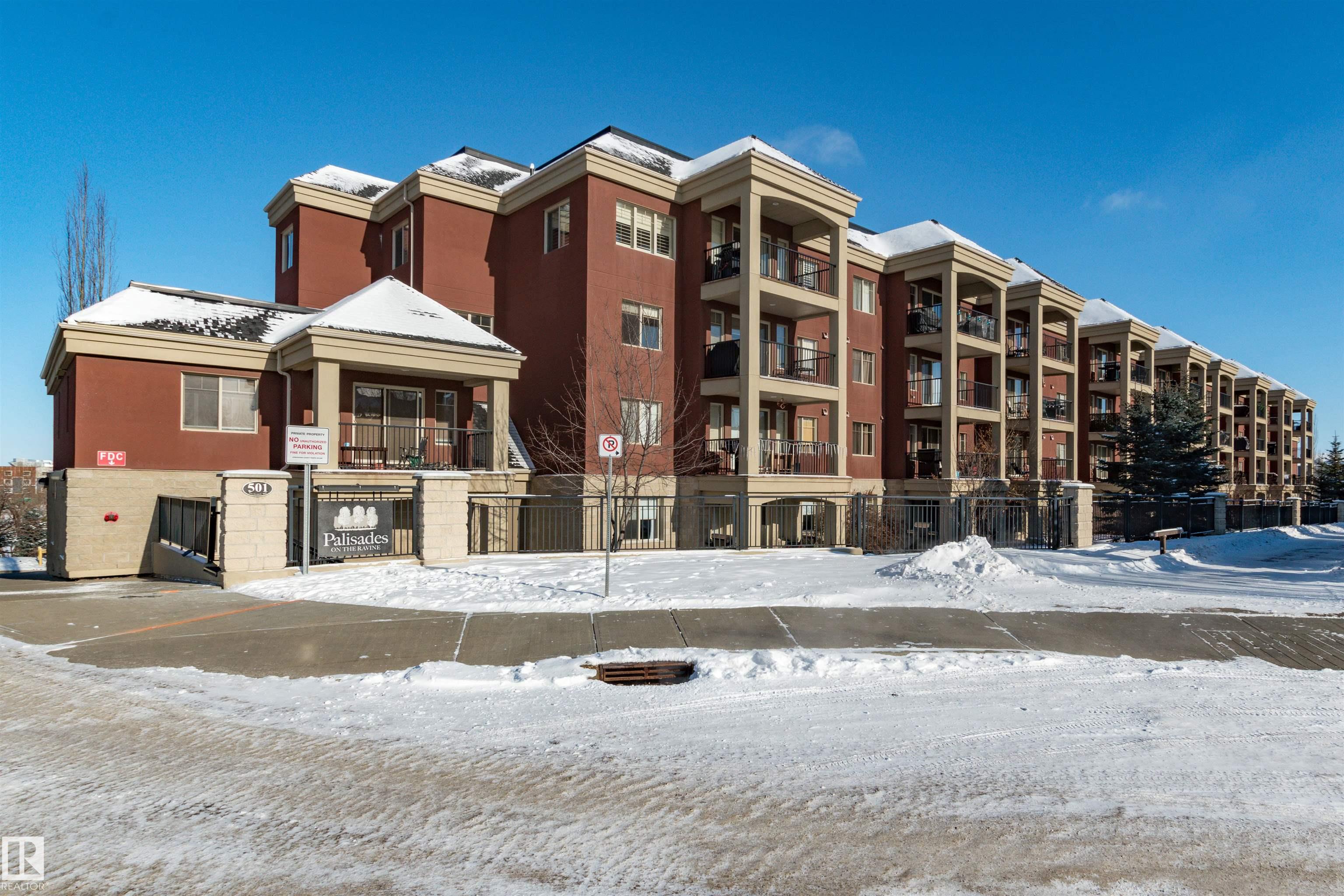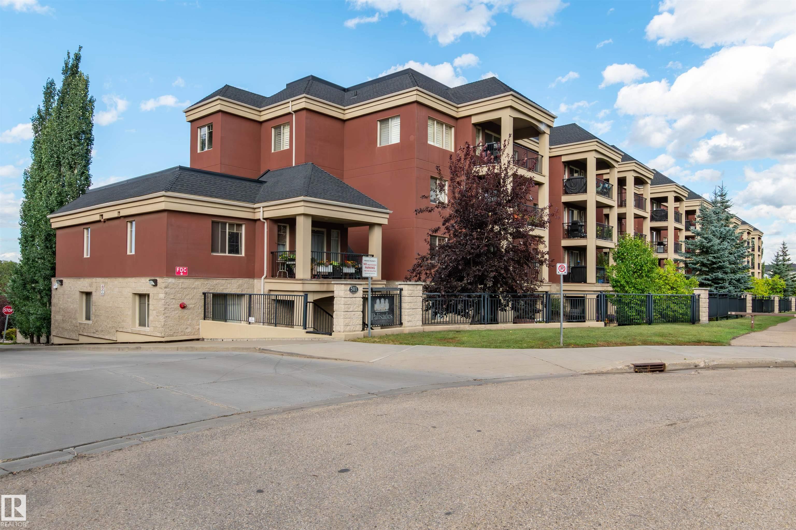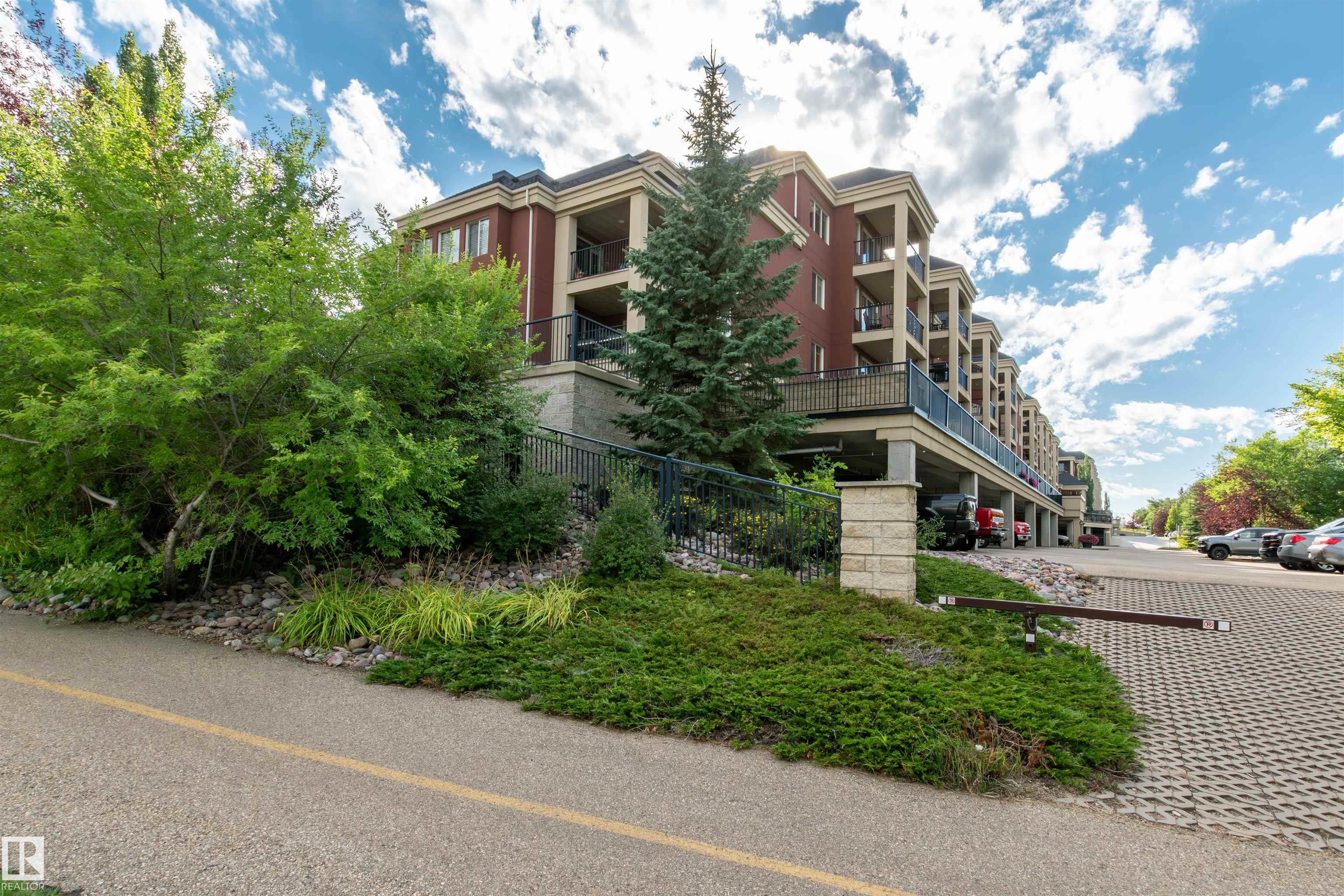 BACKING ON THE RAVINE! PRIME LOCATION for this large 2 BEDROOM + DEN condo! Adult living in a CONCRETE AND STEEL BUILDING. Open design offering 1028 square feet. Modern kitchen with rich cabinetry, appliances, island/bar, and an adjacent dining area. Spacious and bright living room with direct access to your large balcony. Enjoy the BEAUTIFUL TREED VIEW! Convenient in-suite laundry and a 4 piece bathroom. The Primary Bedroom offers a walk-through closet and a lovely 3 piece ensuite. Secured and HEATED UNDERGROUND TITLED PARKING with storage space. Condo fees include professional management, snow removal, grass cutting, and heat & water. Super close to awesome amenities such as Millennium Place, parks, various restaurants, shopping, transit, and more! Enjoy the best of condo living in one of the most popular communities in Sherwood Park. Welcome to Palisades on The Ravine! Visit REALTOR© website for information.