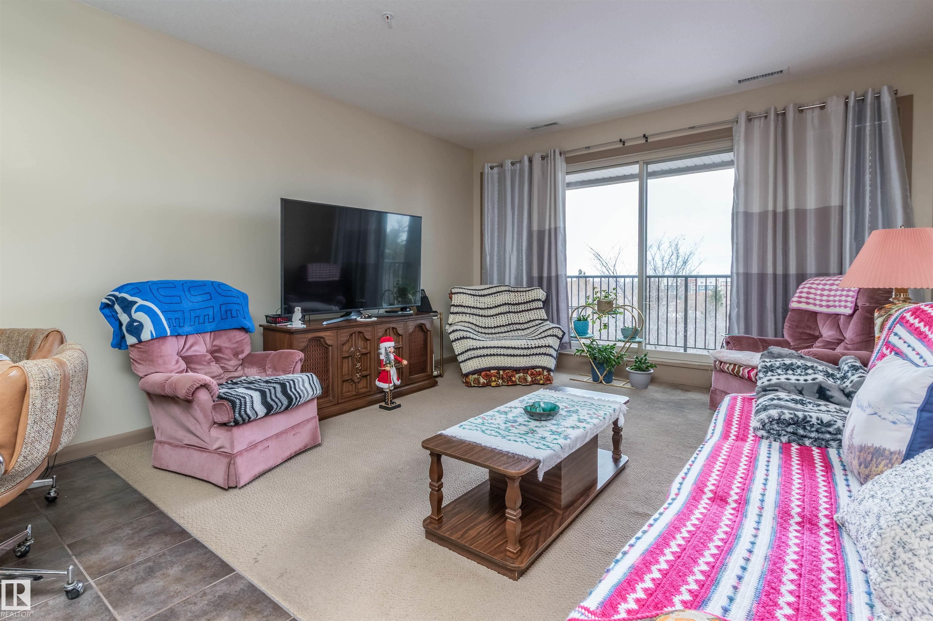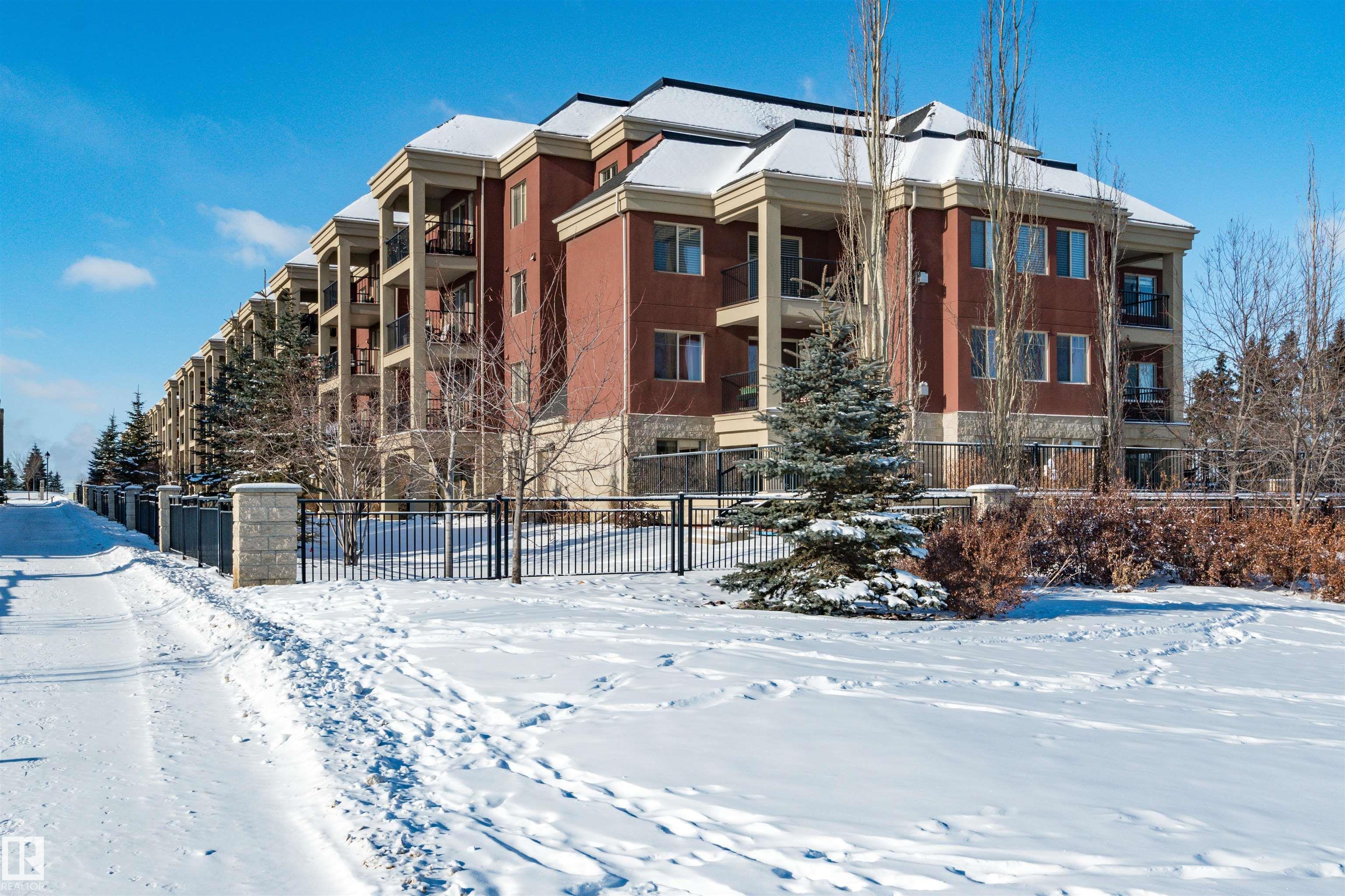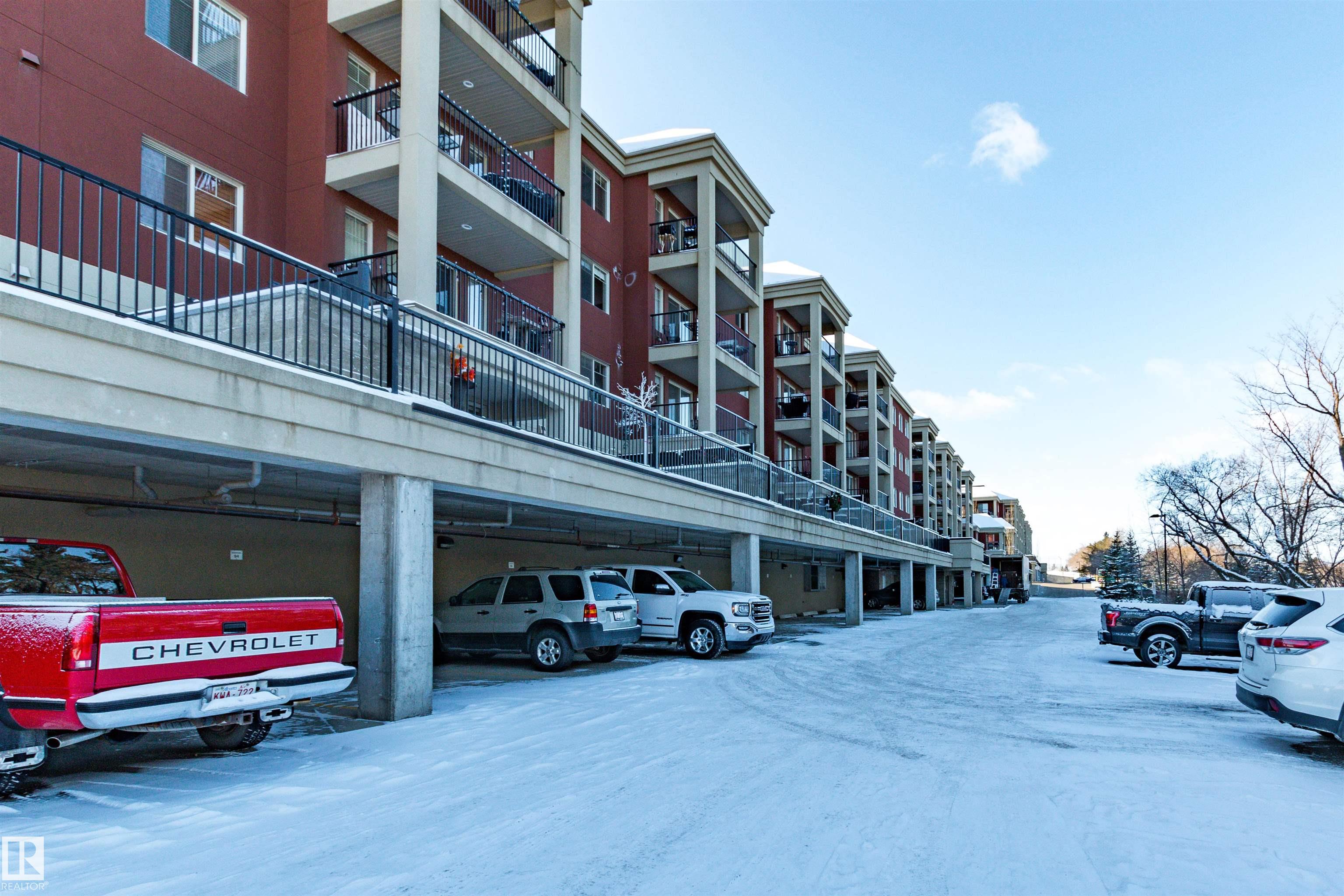 BACKING ON THE RAVINE! PRIME LOCATION for this large 2 BEDROOM + DEN condo! Adult living in a CONCRETE AND STEEL BUILDING. Open design offering 1028 square feet. Modern kitchen with rich cabinetry, appliances, island/bar, and an adjacent dining area. Spacious and bright living room with direct access to your large balcony. Enjoy the BEAUTIFUL TREED VIEW! Convenient in-suite laundry and a 4 piece bathroom. The Primary Bedroom offers a walk-through closet and a lovely 3 piece ensuite. Secured and HEATED UNDERGROUND TITLED PARKING with storage space. Condo fees include professional management, snow removal, grass cutting, and heat & water. Super close to awesome amenities such as Millennium Place, parks, various restaurants, shopping, transit, and more! Enjoy the best of condo living in one of the most popular communities in Sherwood Park. Welcome to Palisades on The Ravine! Visit REALTOR© website for information.