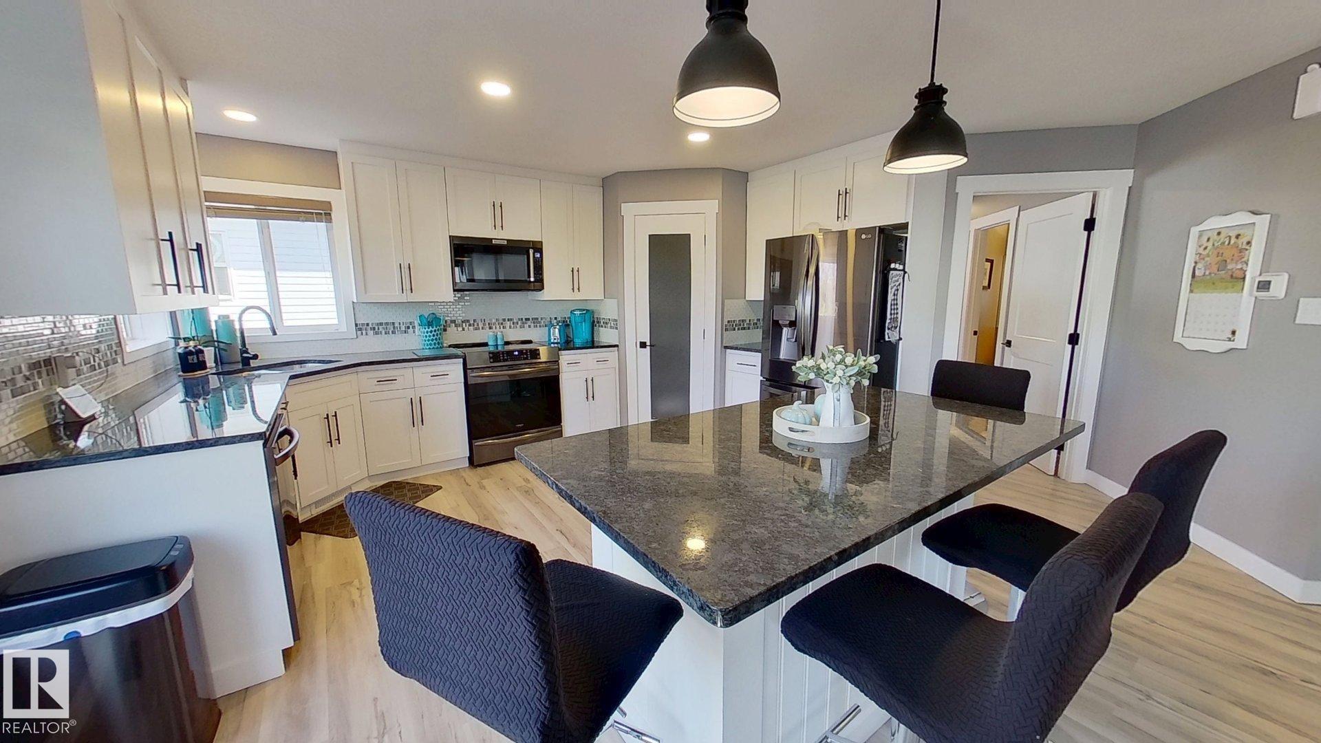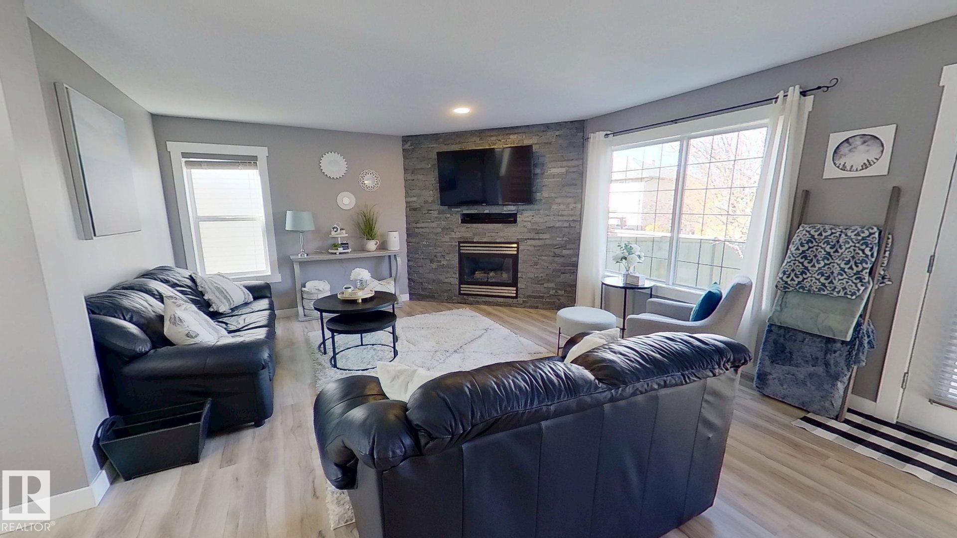 Beautifully updated 3+1 bedroom, 3.5 bath home offering 2,099 sq. ft. of comfortable living space. The recently remodelled 2024 kitchen and bathrooms add a modern touch, while the gas fireplace creates a warm and inviting atmosphere. Enjoy convenient same-floor laundry and an attached double garage. The backyard is perfect for entertaining with a large composite deck off the kitchen and a lower stamped concrete patio. The primary suite features a spa-inspired ensuite with a spacious walk-in tile shower. Freshly painted main floor, and basement was also recently painted. New shingles in the last 5 years. Also incuded in the sale is 4 kitchen bar stools. A move-in ready home designed for style and function