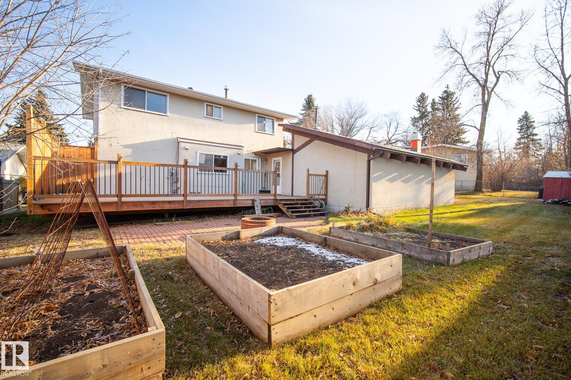Square footage & location combine for the win at this xxxx ftý home. Nestled in one of the most desirable cul-de-sacs in Mills Haven, you are welcomed by a charming covered front concrete porch. Situated near the golf course, Broadmoor Blvd, convenience store, hair salon, restaurants, & kids can walk to elementary & junior high schools! You'll love the private rear deck on this LARGE 800 mý lot, along with a patio, garden beds, mature lilacs & great neighbours. This classic Perry-built two storey has room for everyone: 4 upper bedrooms, and the main floor family room is big enough for a pool table, with vaulting ceilings & a brick fireplace. Main floor also offers a front living room featuring a bow window, a dining room and a large eat-in kitchen. Basement finishing includes a 3-pc bathroom. Other notables: 22 x 22 garage, hot water tank 2024, shingles 2019, deck 2020, dishwasher 2025, gas range & laundry pair 2008.