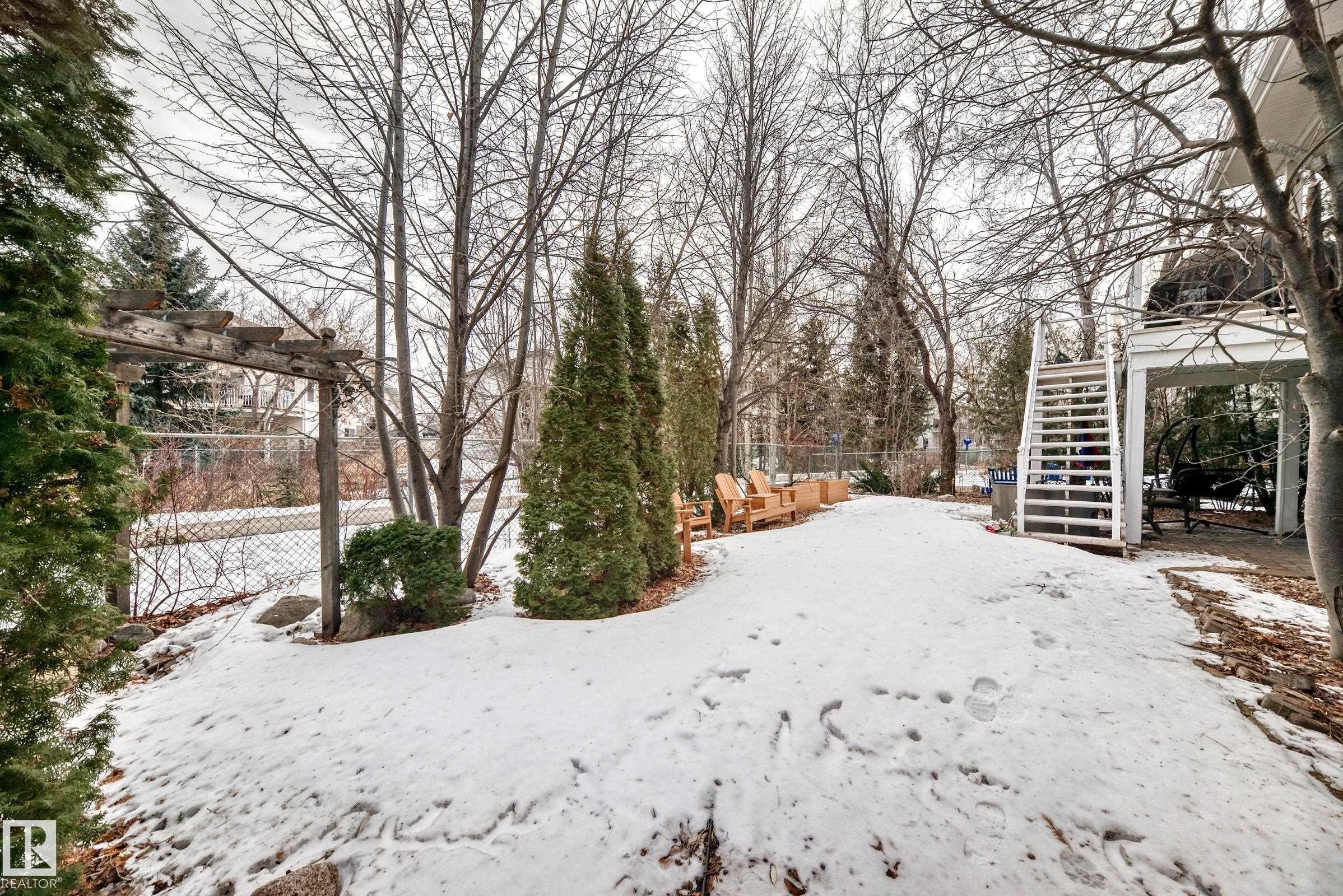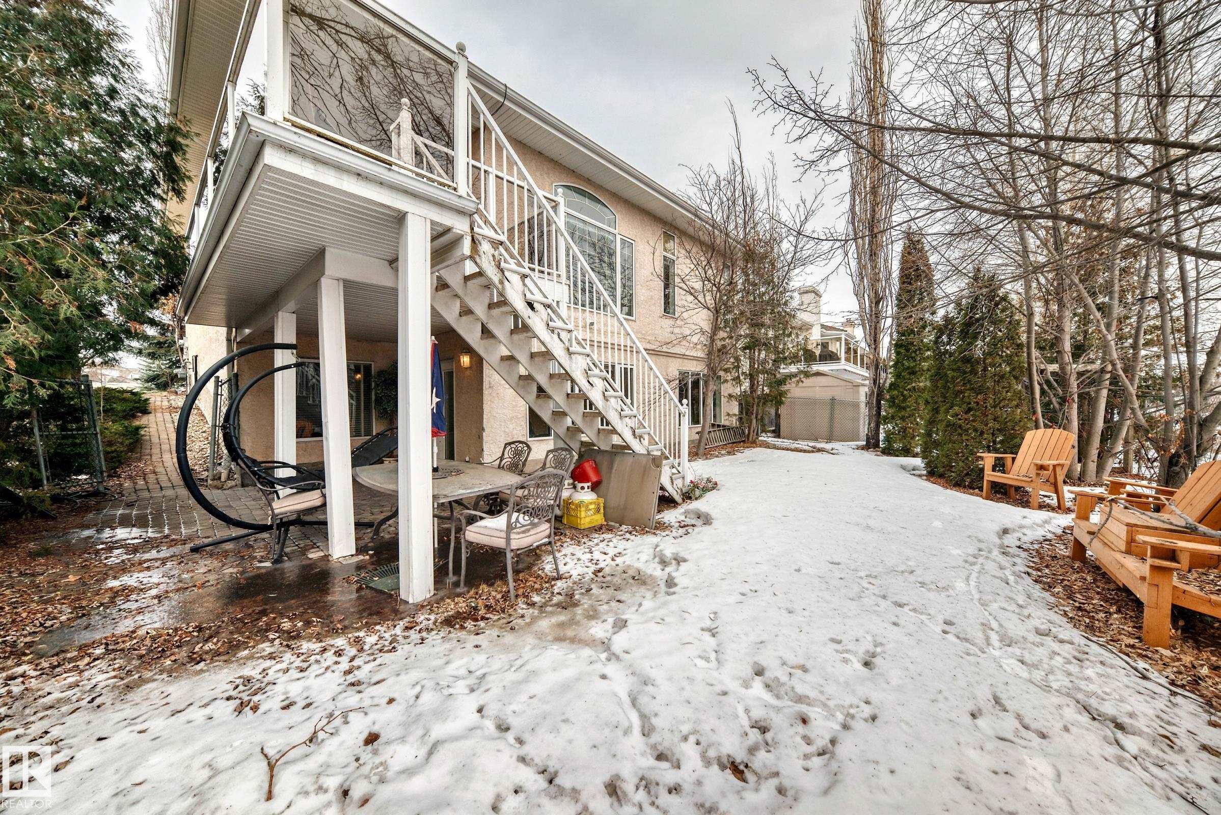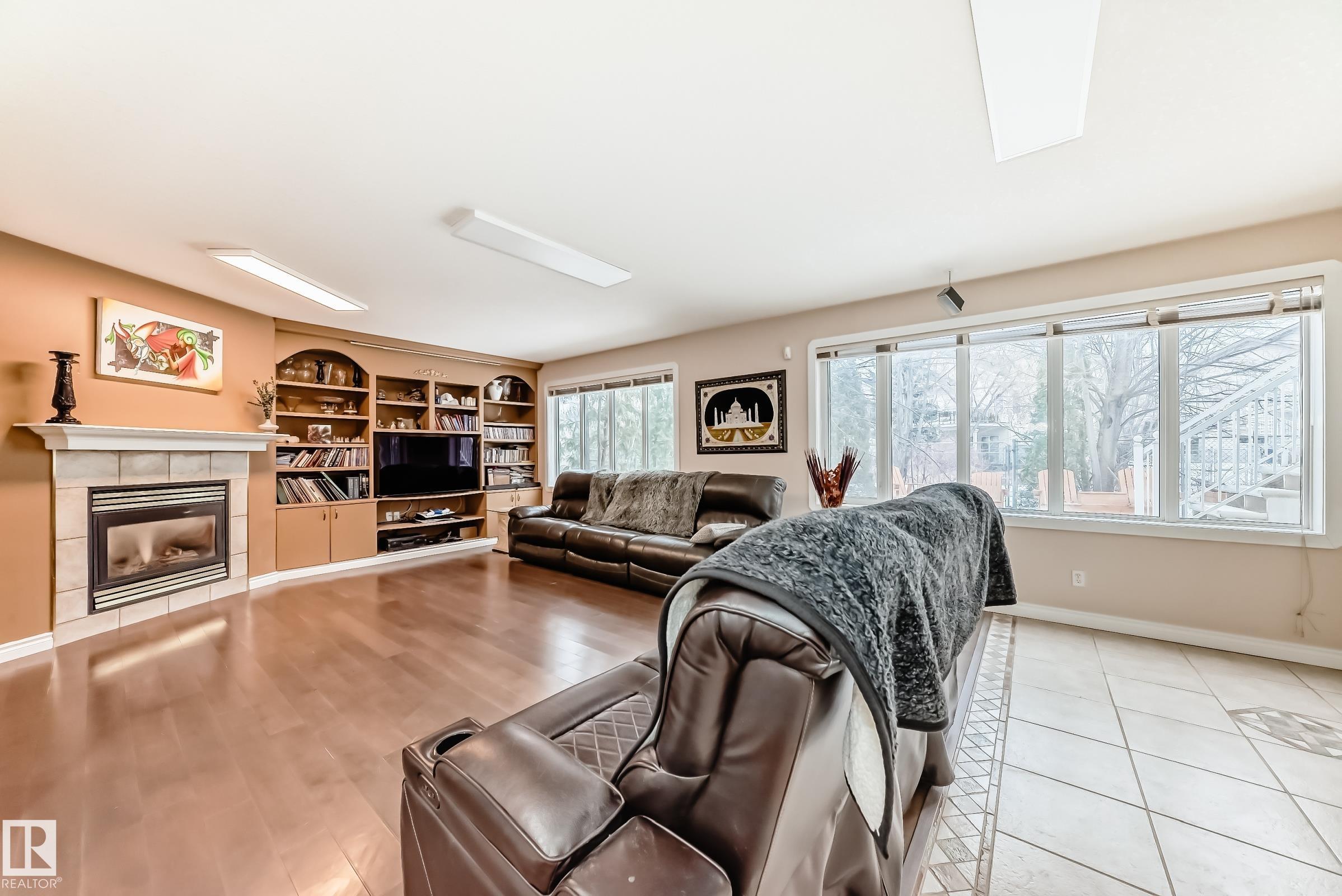 BACKING WALKWAY TO PARK AND LAKE! This GORGEOUS 5 Bdrm 3 Full Bath Walk-Out Bungalow is RENOVATED to include: Numerous Upgrades, New Baths, New A/C, New Flooring, New Furnace, New Water Softener & RO filter water system, New Tankless Hotwater, New H.E.P.A. Air Purifier, Newer Shingles 2022, The main floor presents: A Chef's kitchen featuring two tone maple cabinetry, 3 top of the line appliances to include the gas countertop stove, granite island overlooking the L/R accented by a 3 Sided Gas F/P & a covered deck just off the kitchen nook. You'll also find a formal DR/den, the king-sized Primary retreat that boasts a walk-in closet & luxurious 5 PC ensuite & completing the main level is the second bedroom, main floor laundry & guest bath. The lower level boasts large family-sized rec room, gas F/P, 3 generous bdrms, 4-piece bath, 2nd laundry & walk-out to the parklike setting w/a fish pond and gate access. Double HEATED & Insulated Garage w/water & drain & underground sprinkles.