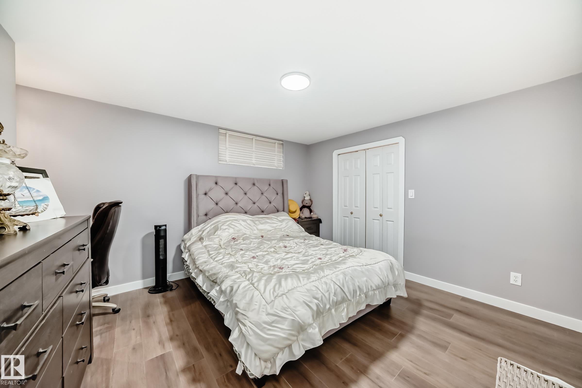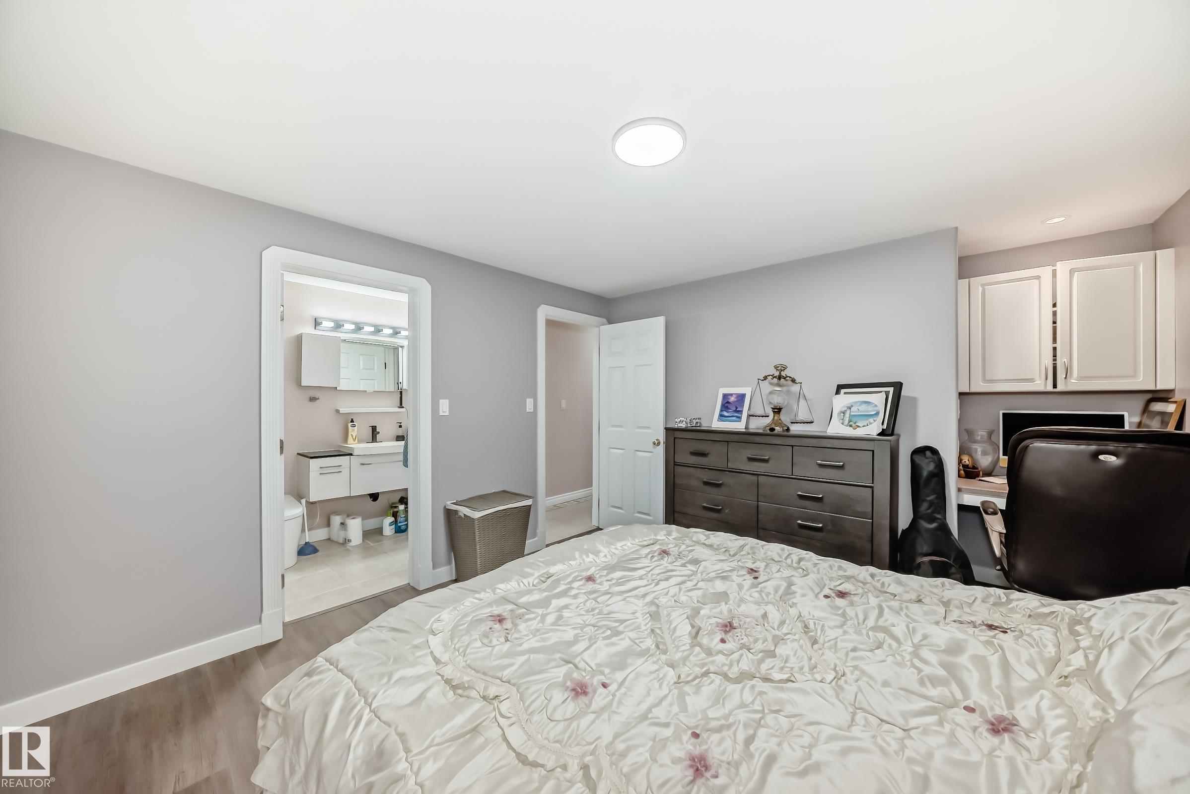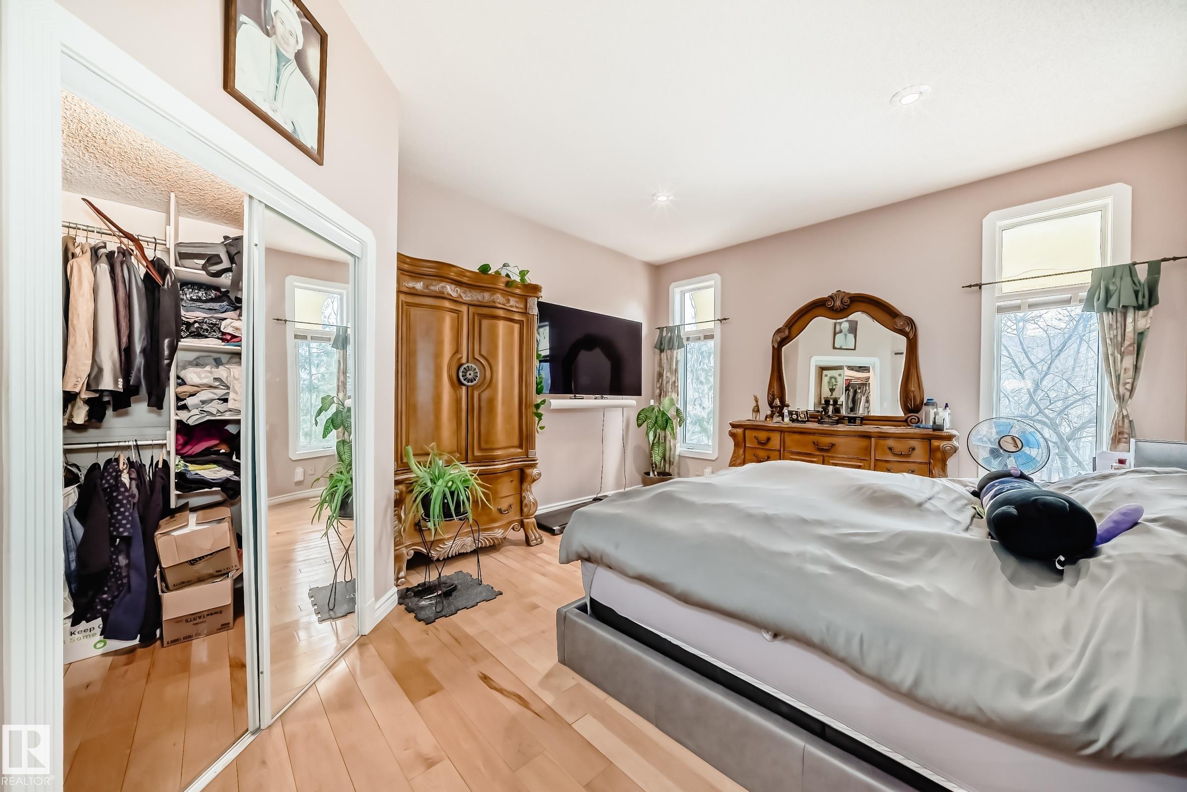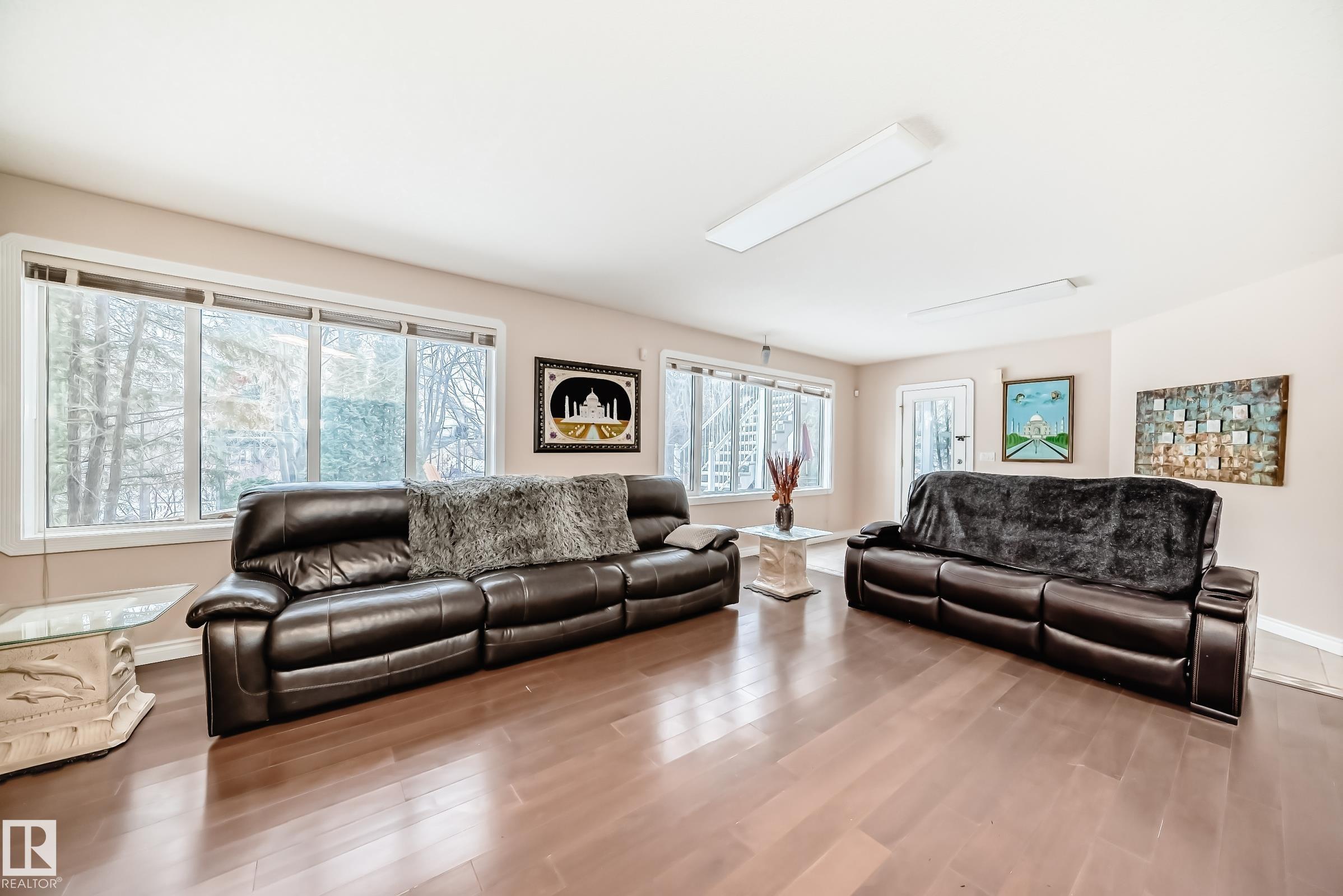 BACKING WALKWAY TO PARK AND LAKE! This GORGEOUS 5 Bdrm 3 Full Bath Walk-Out Bungalow is RENOVATED to include: Numerous Upgrades, New Baths, New A/C, New Flooring, New Furnace, New Water Softener & RO filter water system, New Tankless Hotwater, New H.E.P.A. Air Purifier, Newer Shingles 2022, The main floor presents: A Chef's kitchen featuring two tone maple cabinetry, 3 top of the line appliances to include the gas countertop stove, granite island overlooking the L/R accented by a 3 Sided Gas F/P & a covered deck just off the kitchen nook. You'll also find a formal DR/den, the king-sized Primary retreat that boasts a walk-in closet & luxurious 5 PC ensuite & completing the main level is the second bedroom, main floor laundry & guest bath. The lower level boasts large family-sized rec room, gas F/P, 3 generous bdrms, 4-piece bath, 2nd laundry & walk-out to the parklike setting w/a fish pond and gate access. Double HEATED & Insulated Garage w/water & drain & underground sprinkles.