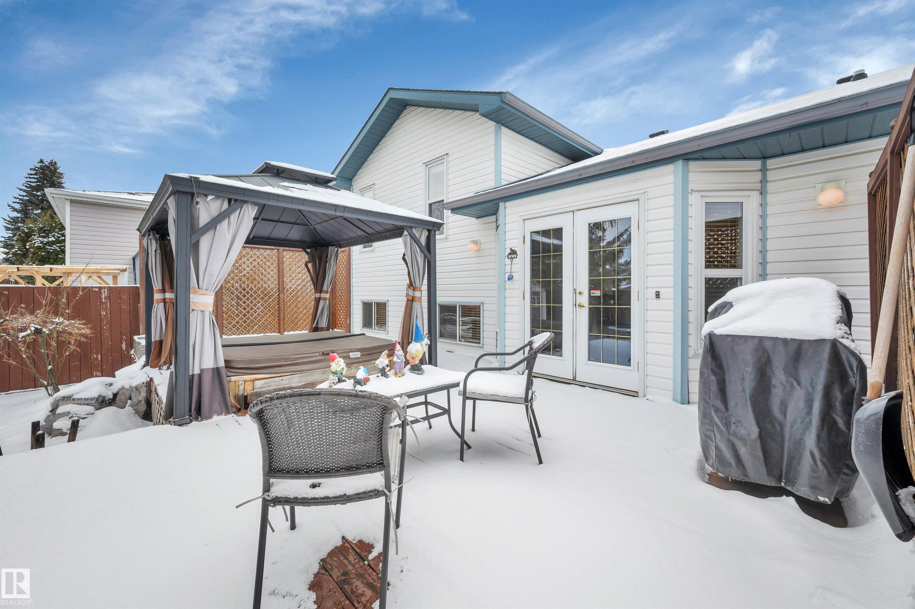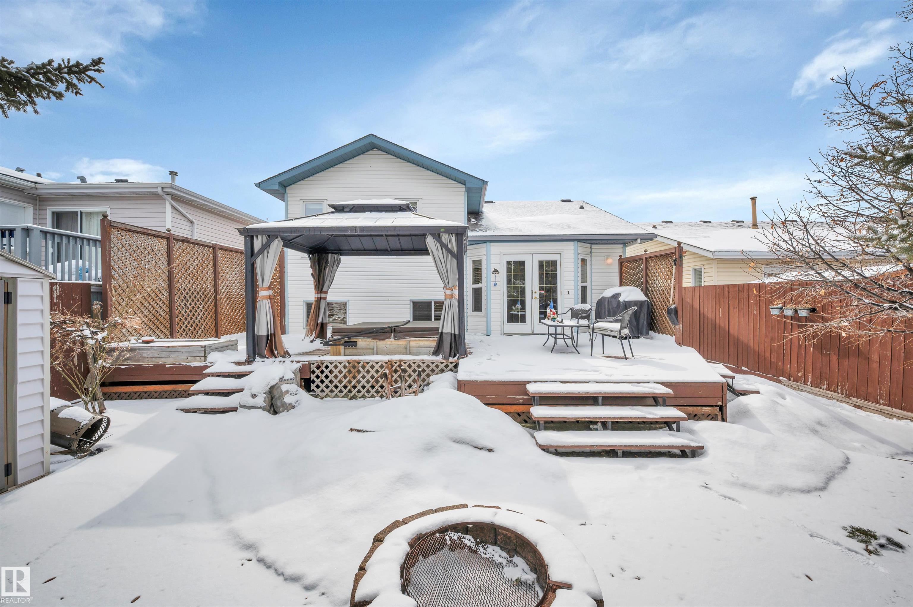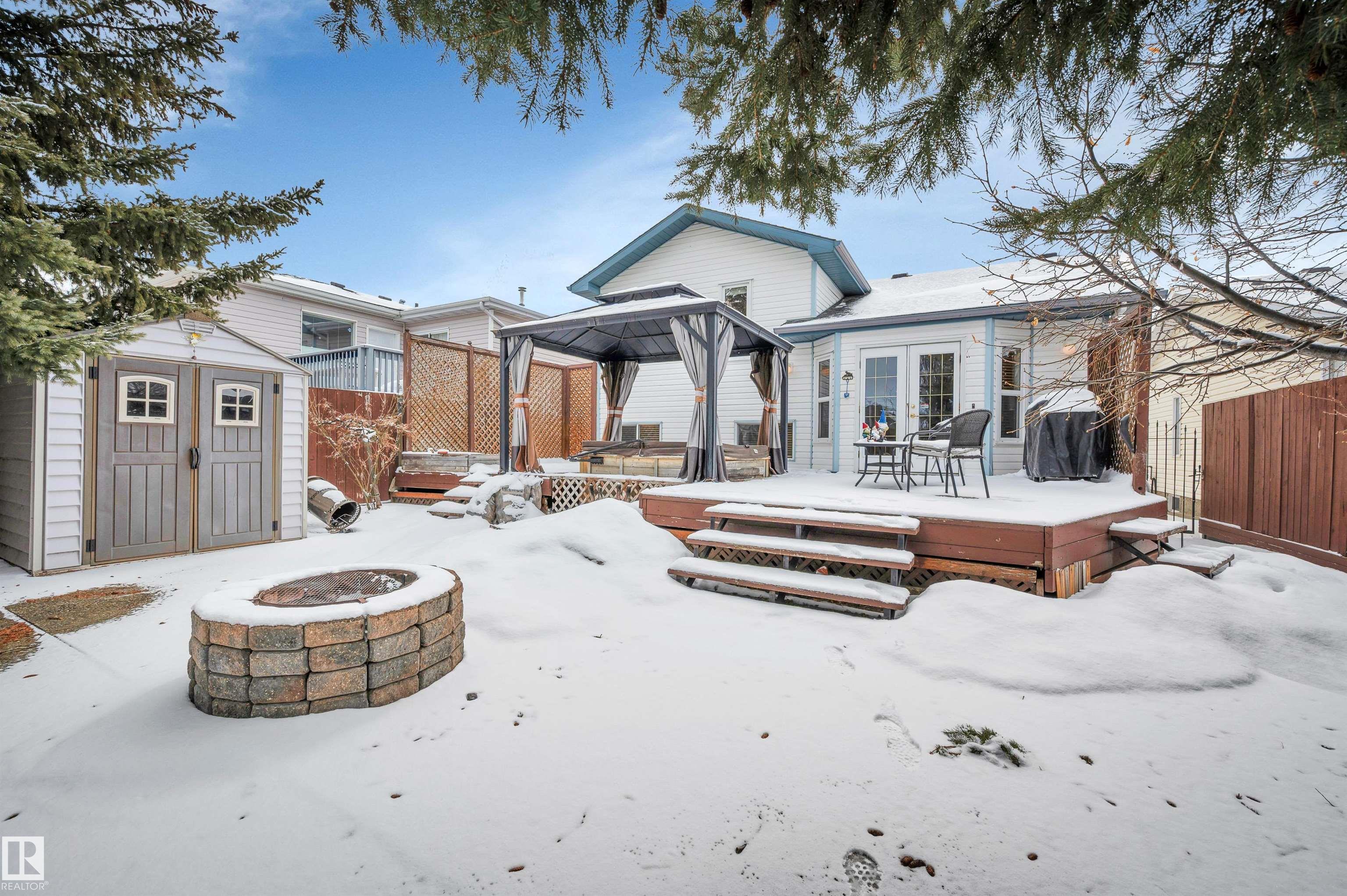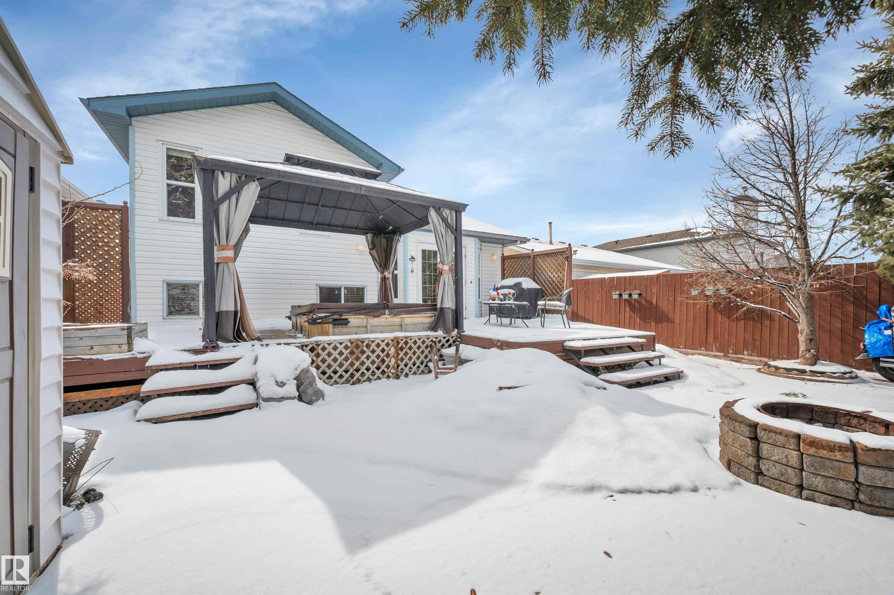 Absolutely impeccable, incredibly maintained 4 level split with over 1500sf of developed living space in Regency Park! This home boasts vaulted ceilings on main floor & hardwood throughout, fourth level is newer plush carpet. Kitchen is complete w/oak cabinets highlighting tons of built in, pull outs, wine rack & S/S appliances. Garden doors overlook the fabulous, private maintenance free backyard w/mature trees, planter boxes & hot tub. Hardwood stairs lead you to a cozy family room with gas f/p, 3rd bedroom & full bath. The lower level is huge and bright; it offers a fantastically HUGE laundry with double sinks & folding table complete with loads of cabinets + hobby, storage or exercise area. The 4th bedroom features a 2nd gas fireplace with a stone feature wall. Tons of storage or great kids hangout in the enormous crawl space! Ditch the mower & enjoy your own private outdoor escape, this fully hardscaped yard features a stone fireplace, feature wall & a bonus shed & hot tub w/gazebo! MOVE IN READY!