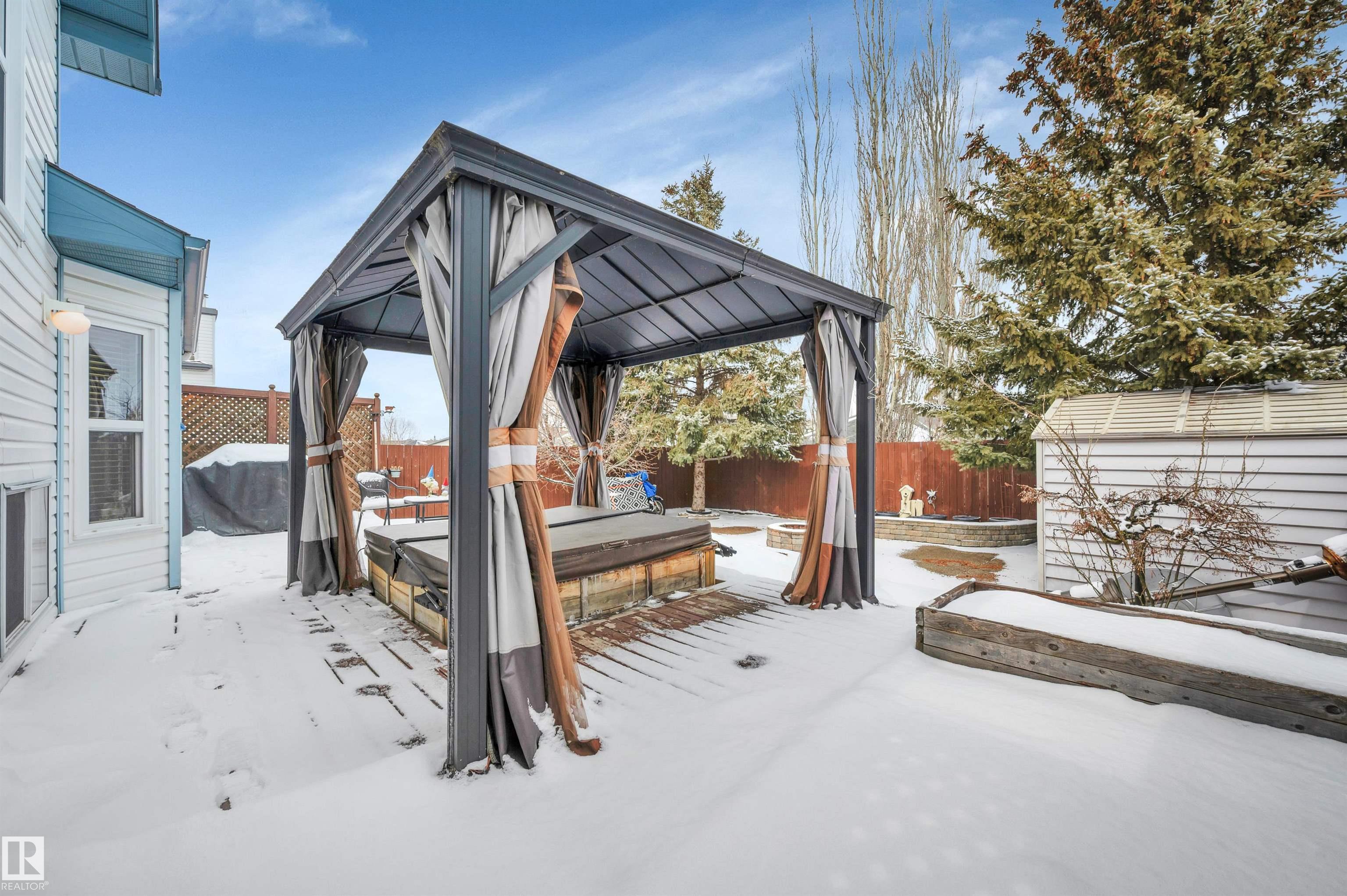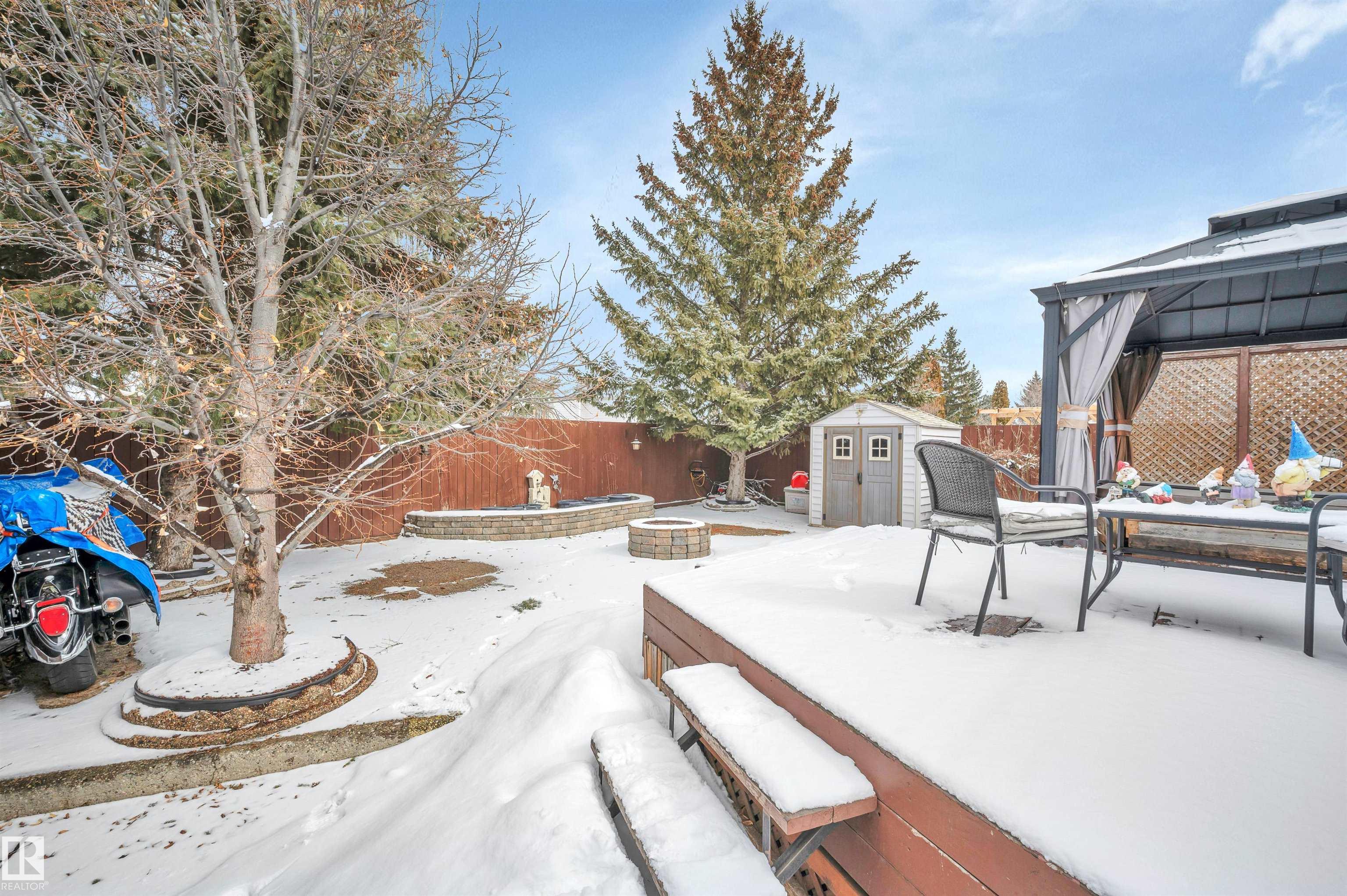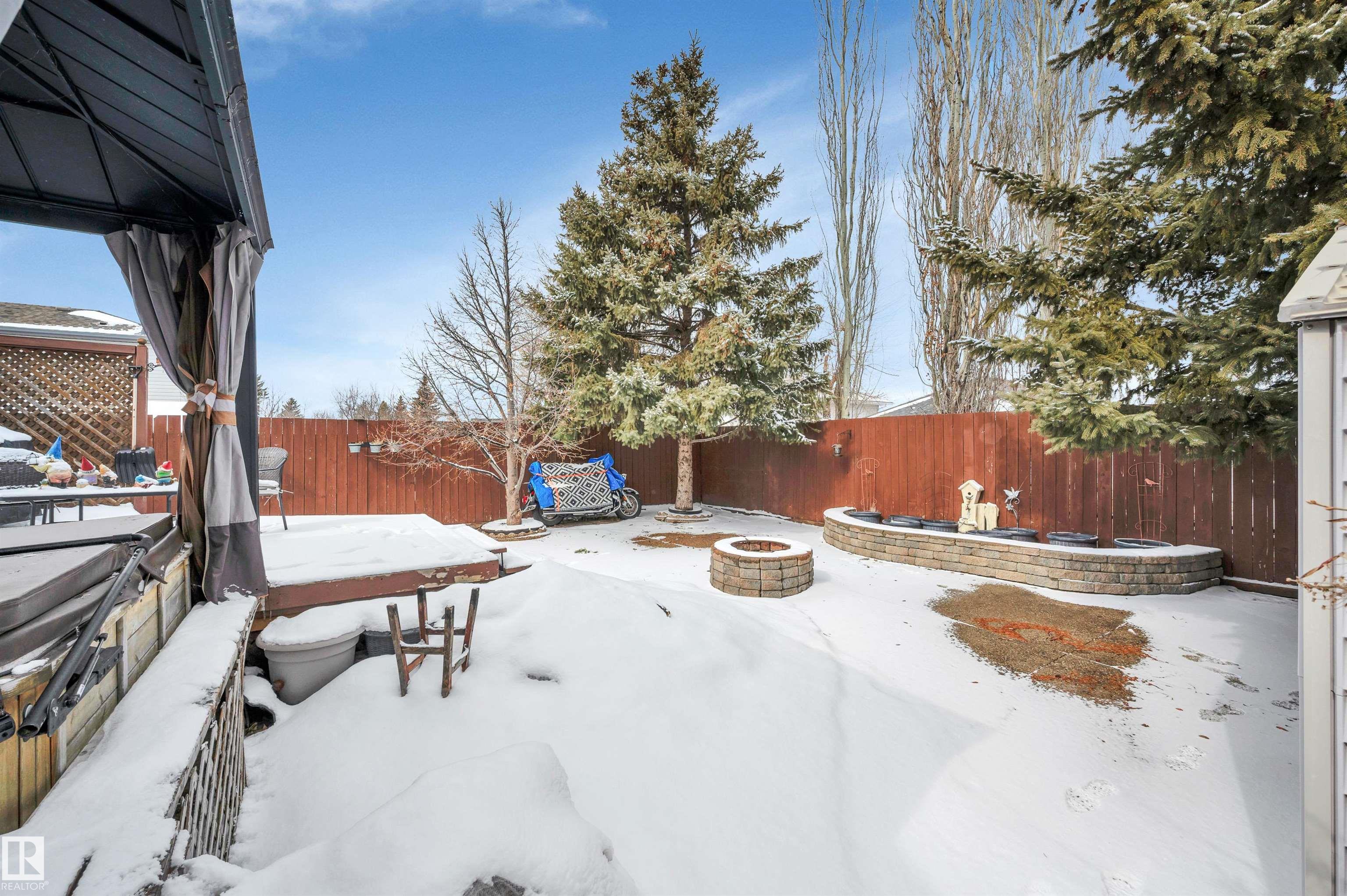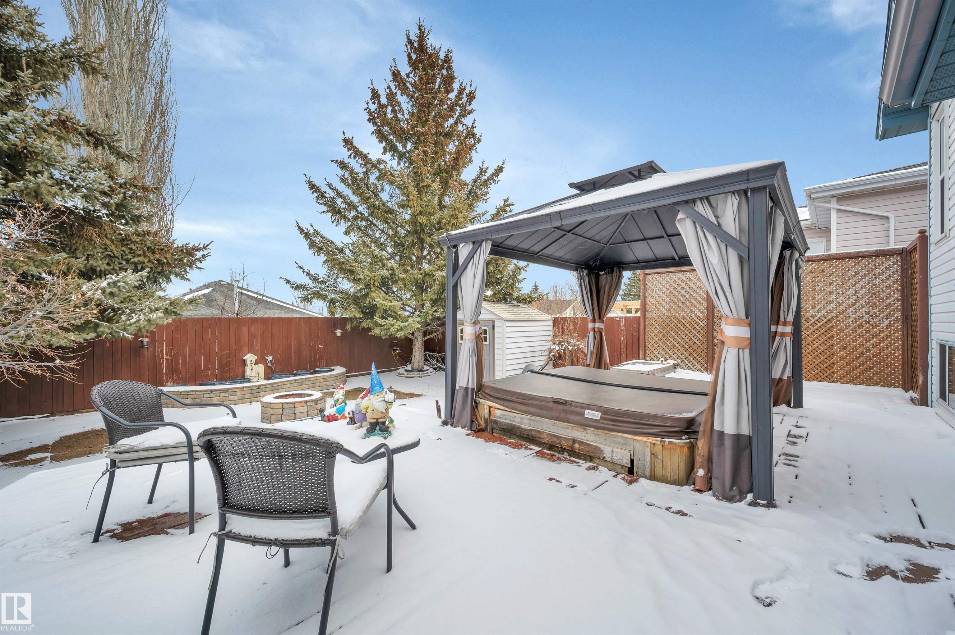 Absolutely impeccable, incredibly maintained 4 level split with over 1500sf of developed living space in Regency Park! This home boasts vaulted ceilings on main floor & hardwood throughout, fourth level is newer plush carpet. Kitchen is complete w/oak cabinets highlighting tons of built in, pull outs, wine rack & S/S appliances. Garden doors overlook the fabulous, private maintenance free backyard w/mature trees, planter boxes & hot tub. Hardwood stairs lead you to a cozy family room with gas f/p, 3rd bedroom & full bath. The lower level is huge and bright; it offers a fantastically HUGE laundry with double sinks & folding table complete with loads of cabinets + hobby, storage or exercise area. The 4th bedroom features a 2nd gas fireplace with a stone feature wall. Tons of storage or great kids hangout in the enormous crawl space! Ditch the mower & enjoy your own private outdoor escape, this fully hardscaped yard features a stone fireplace, feature wall & a bonus shed & hot tub w/gazebo! MOVE IN READY!