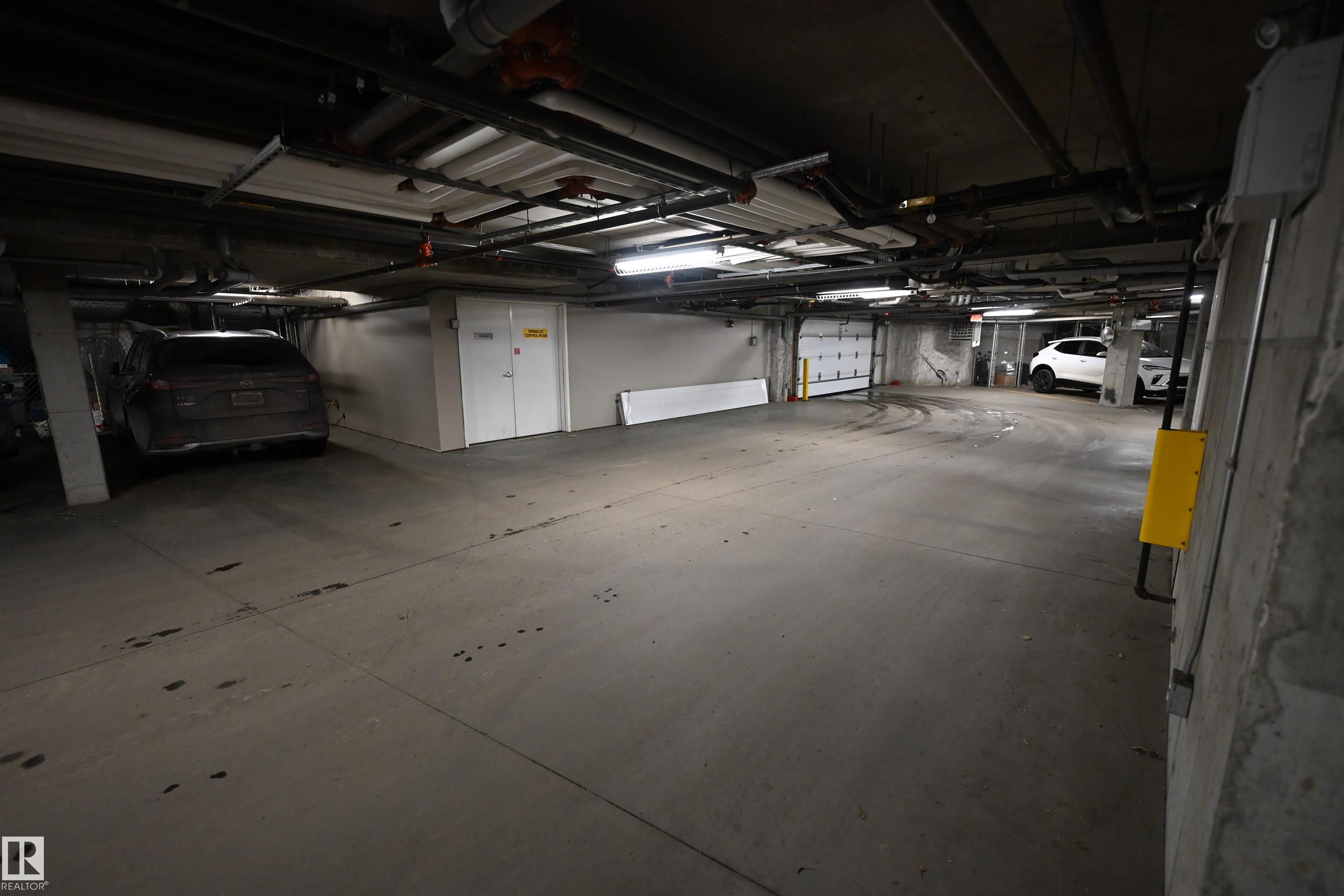 This bright top-floor corner unit offers abundant natural light and vaulted ceilings, with only one shared wall, providing added privacy and a spacious feel. The functional 731 sf 1 bedroom, 1 bathroom + 1 den layout includes a 4-piece bathroom and recent updates such as a new dishwasher, new washer/dryer combo, and a new heat pump unit. Enjoy year-round comfort with heating and air conditioning, top-down, bottom-up blinds for adjustable light and privacy and step out onto your private balcony (BBQ permitted). Small pets are permitted with board approval. Titled heated underground parking stall with a storage unit and ample visitor parking available. Located in a desirable, well-maintained building in a safe neighborhood backing onto a pond and walking path with convenient access to grocery stores, shopping, and a nearby gas station, this home is ideal for those seeking an easy, low-maintenance lifestyle.