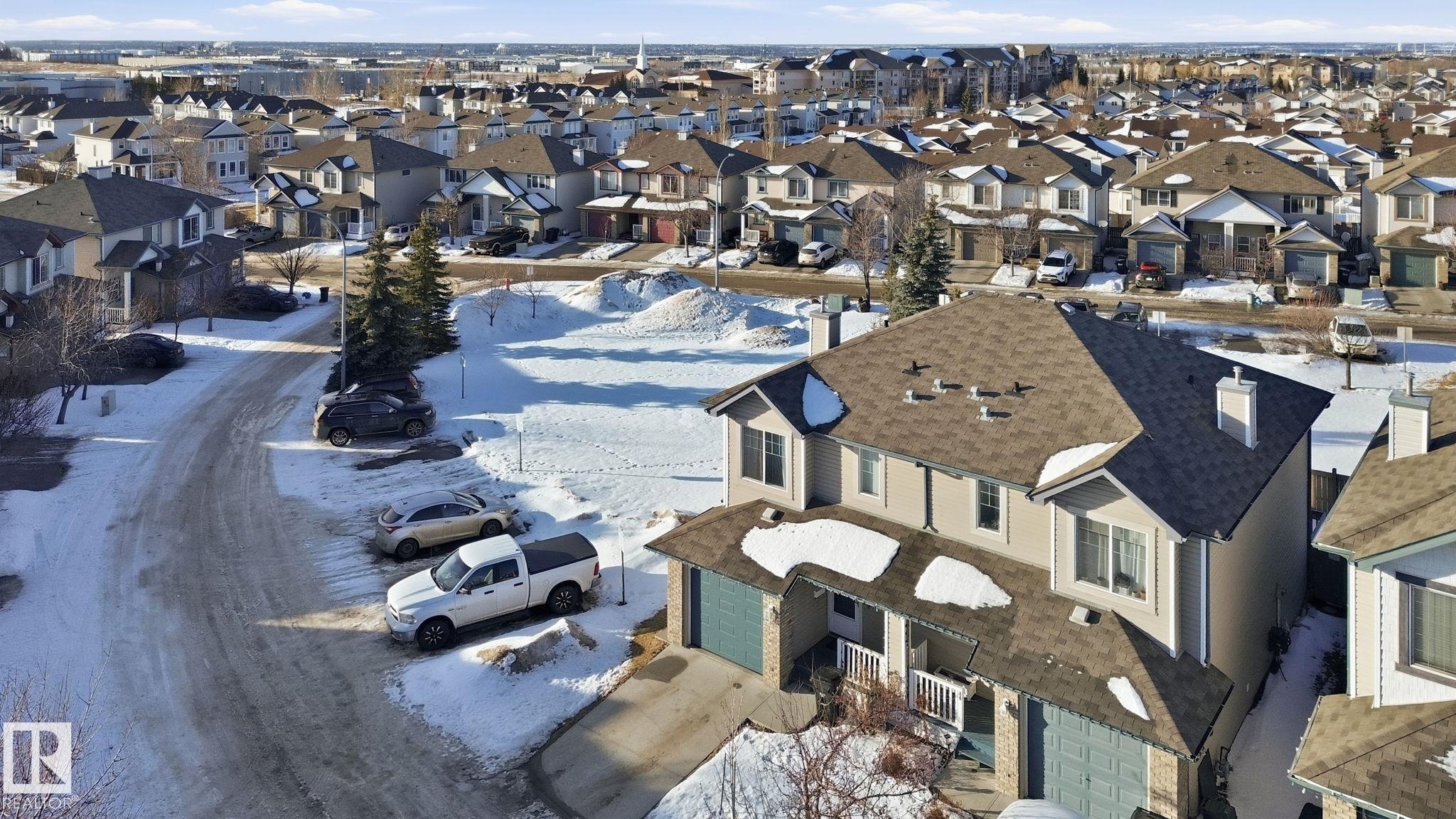 END UNIT | TWO PRIMARY SUITES | BACKING GREENSPACE | UPGRADES Welcome to this well-maintained end-unit townhouse in the desirable community of Sherwood Village. The bright and spacious main floor features new vinyl plank flooring, a cozy corner gas fireplace, a dining nook, and a spacious kitchen with peninsula island and upgraded newer appliances. Upstairs offers two generous primary suites, each with its own ensuite (one 4-piece and one 3-piece), plus convenient upstairs laundry--an ideal setup for roommates, guests, or a home office. The unfinished basement offers an excellent layout and awaits your future development. Recent upgrades include a new furnace, new hot water tank, air conditioning, upgraded appliances, and new flooring. As an end unit, the home benefits from extra windows and abundant natural light while backing and siding onto greenspace for added privacy. Located close to parks, walking paths, shopping, restaurants, schools, and major commuter routes.
