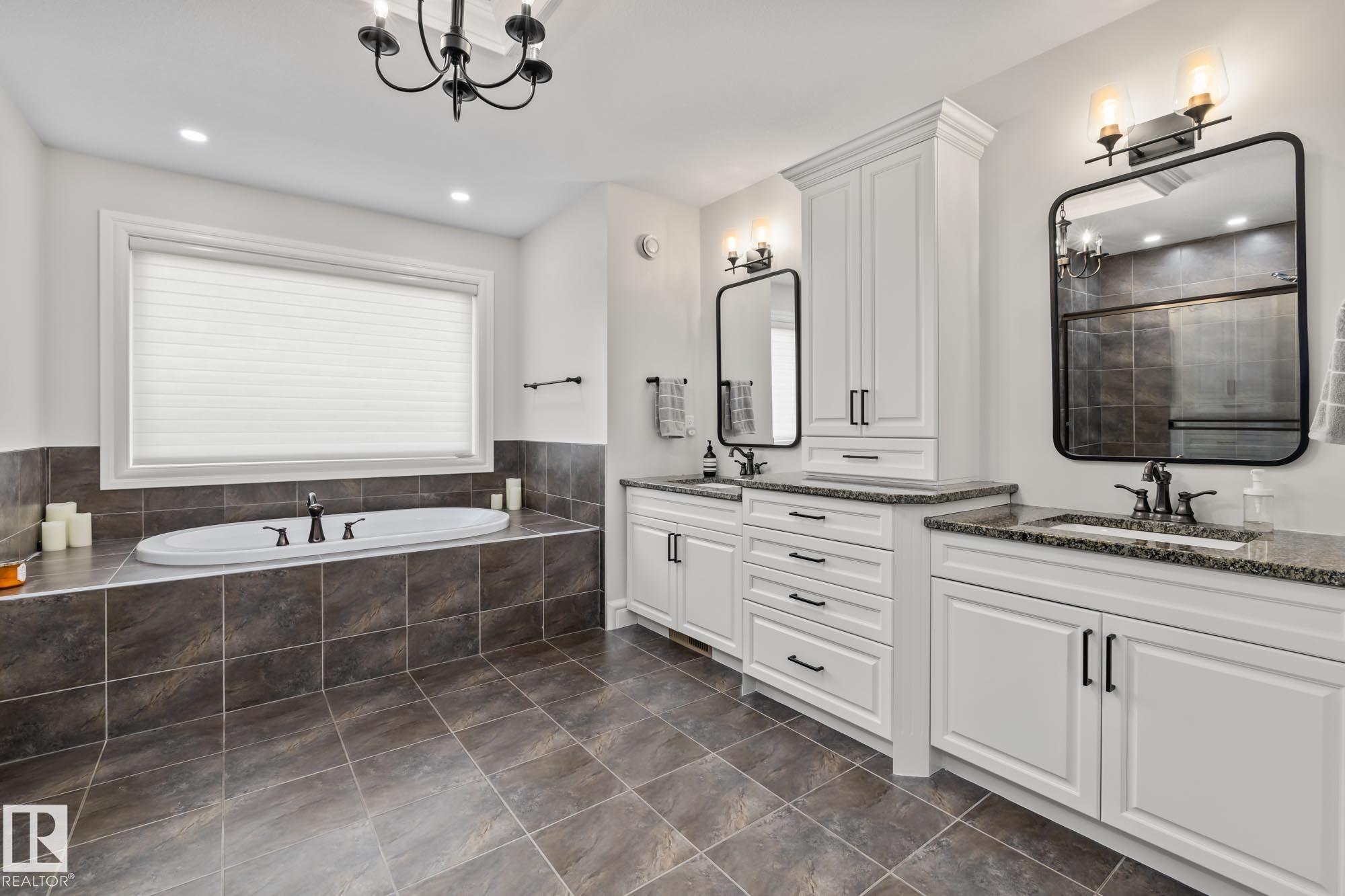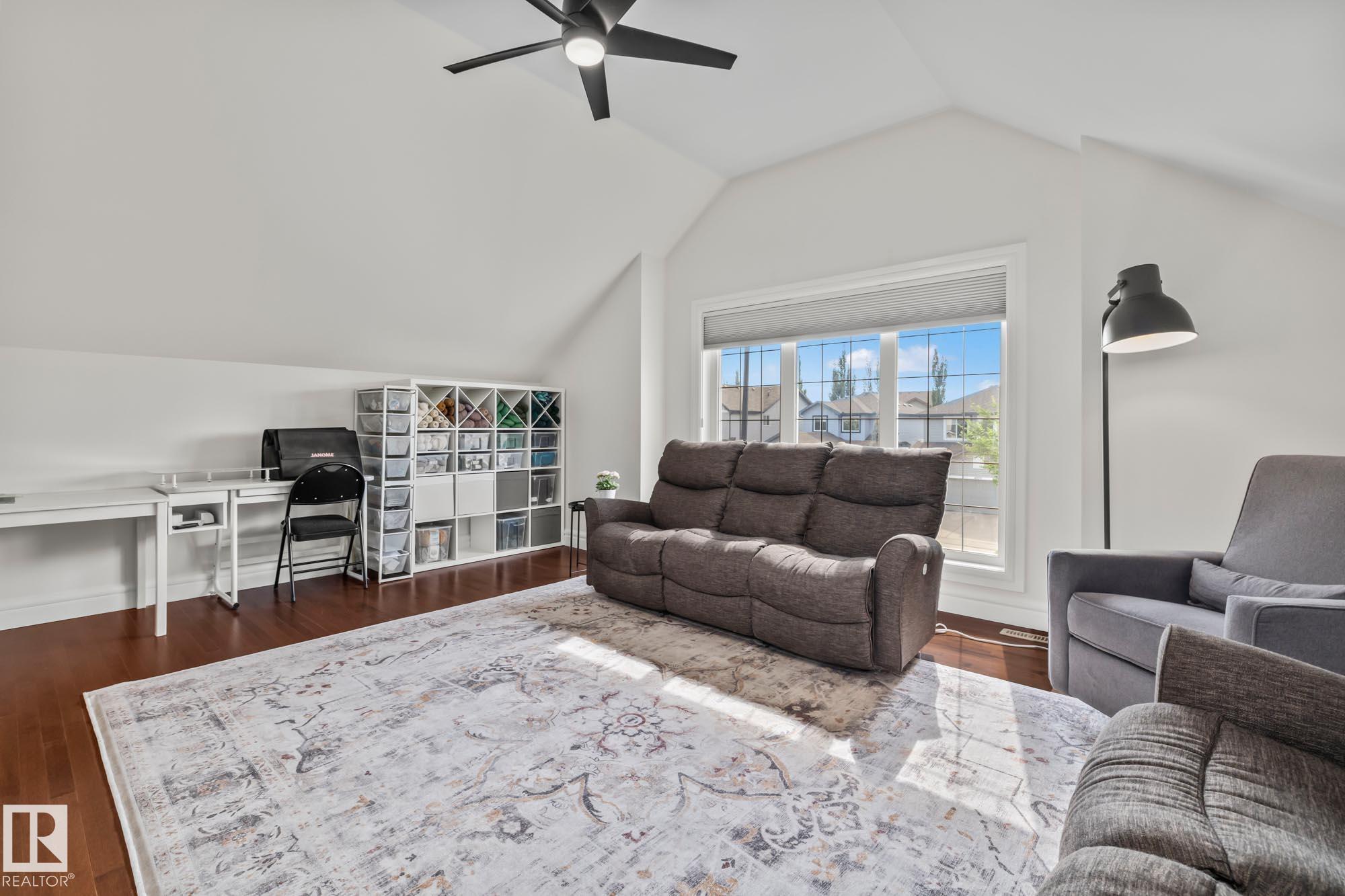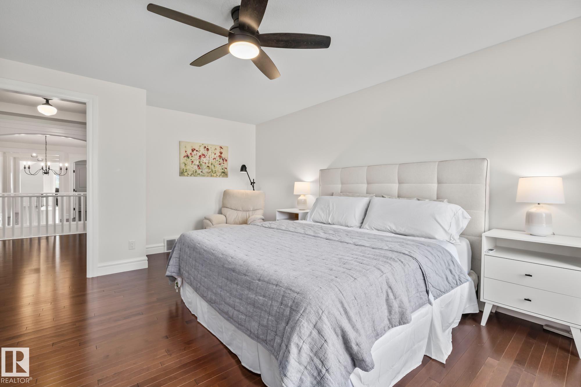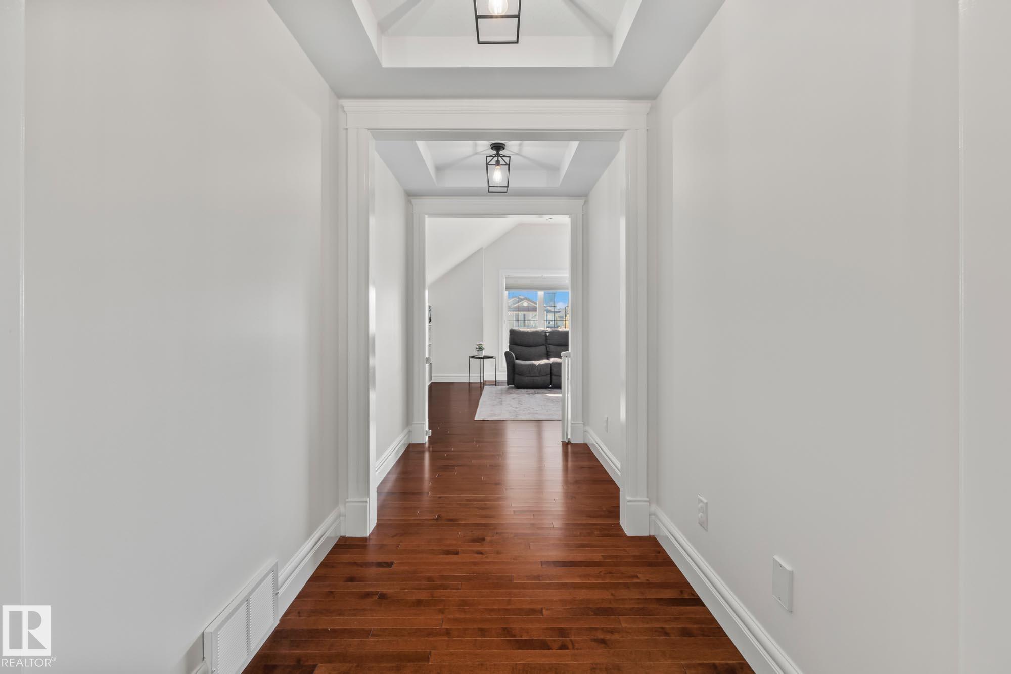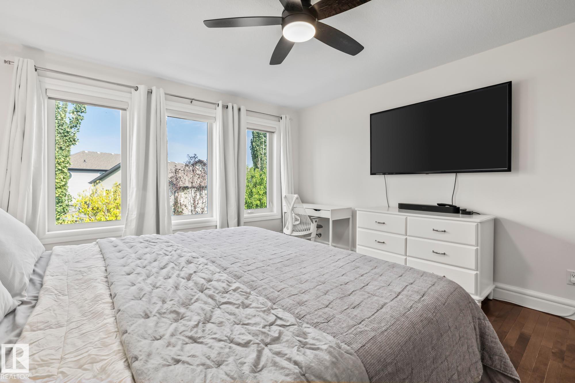 With over $100K in upgrades, this Summerwood 2 storey is truly move in ready. Offering 4 bedrooms, 3.5 baths, and an oversized insulated double garage, it blends modern style with everyday function. The main floor features a chef's kitchen with granite island, professional gas range, refinished cabinets, new backsplash, updated sinks and hardware, opening to a bright living room with stone fireplace. Upstairs, a spacious bonus room, two bedrooms, full bath, and convenient laundry surround the luxurious primary suite with walk in closet, wet bar, and spa inspired ensuite with soaker tub and glass shower. The finished basement adds scraped hardwood floors, a second fireplace, large rec room, flexible fitness or office space, and an additional bedroom with a full bath nearby. Key updates include fresh paint, lighting, hot water tank, water softener, furnace motherboard, washer, dryer, and a remodeled powder room. Outside, enjoy artificial grass, a stone patio, and built in seating, all close to trails, parks