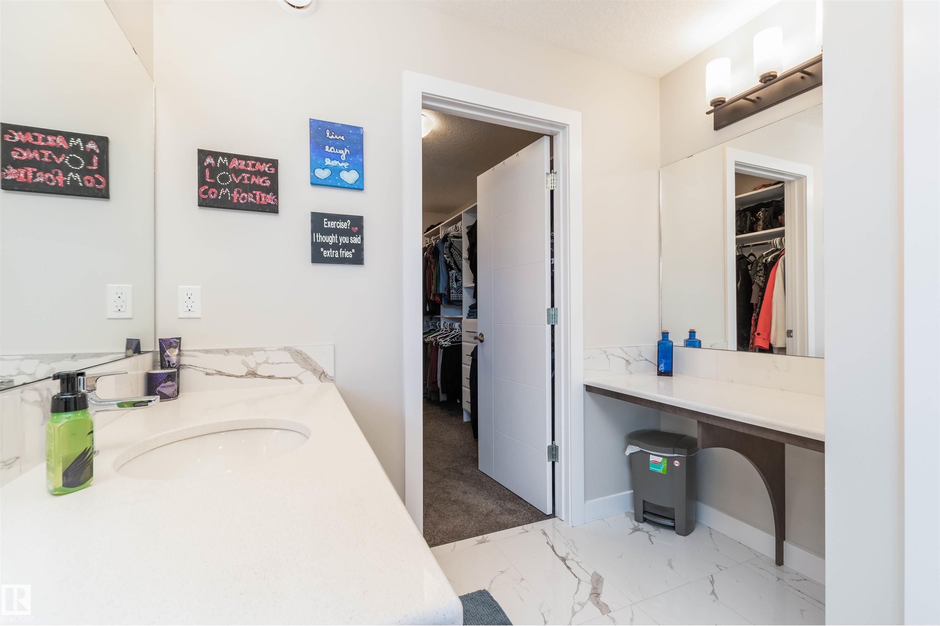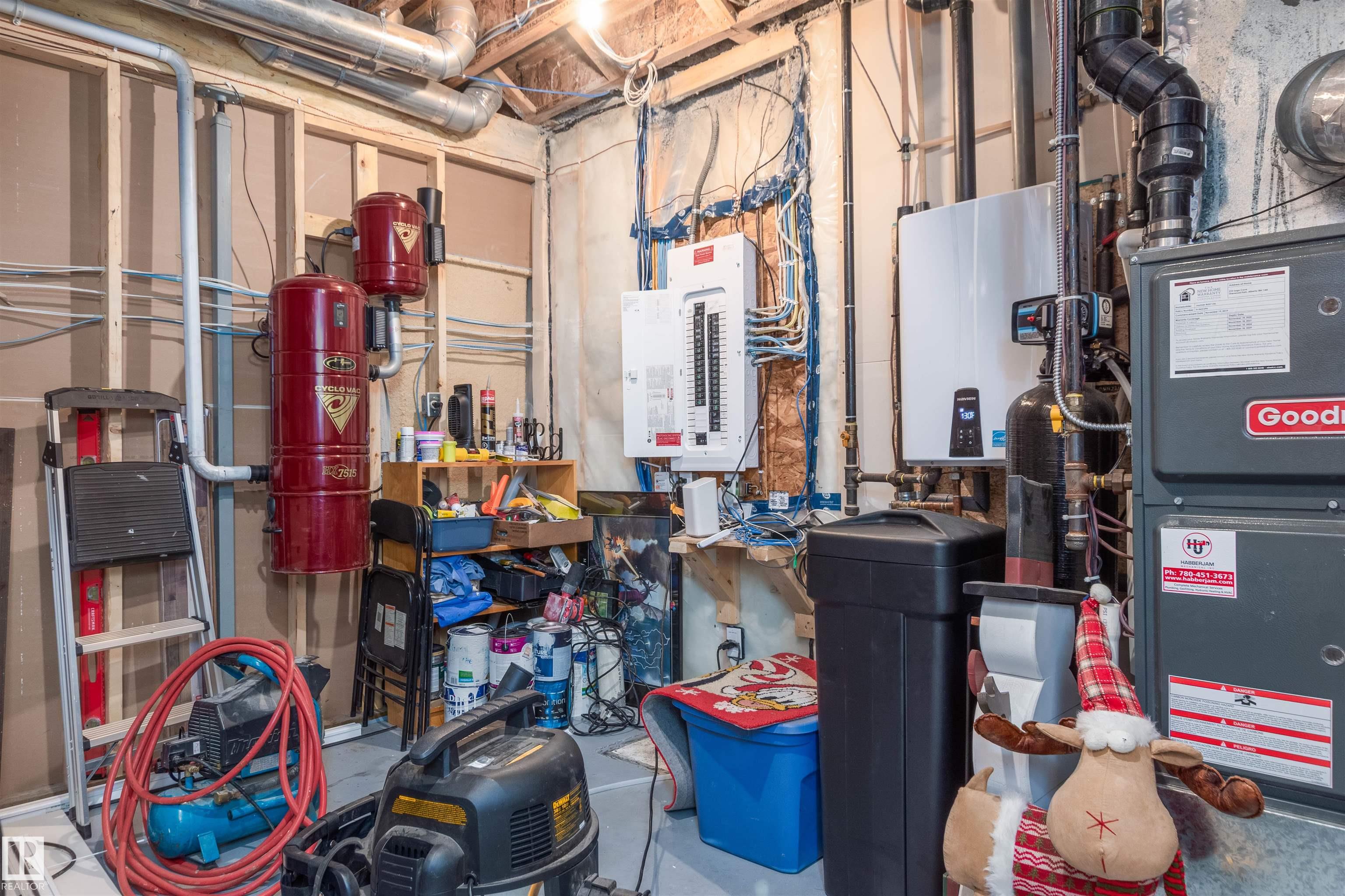 Nestled on a pie lot in a cul-de-sac is this BEAUTIFUL family home! Offering over 2,500 square feet plus a FULLY FINISHED basement! Featuring an open design with a generous entry way & hardwood floors. You'll LOVE the gorgeous kitchen! 2 large islands, Granite countertops, beautiful cabinetry, pantry & stainless steel appliances. Huge dining area, a large living room with a gas fireplace. Main floor powder room. Upstairs is a big Bonus Room, 3 bedrooms, laundry room & a 4 piece bathroom. The Primary Bedroom boasts a LUXURIOUS 5-piece en-suite and two walk-in closets. The basement offers a massive family room, 4th bedroom, 4-piece bathroom & storage space! Additional features include SOLAR PANELS, hot water on demand, a water softener, central vac & central air conditioning. The backyard is fenced & landscaped, with a deck overlooking the west-facing property. An OVERSIZED double-attached garage and beautiful curb appeal! Located near walking trails, parks & great amenities. See it and you will love it!