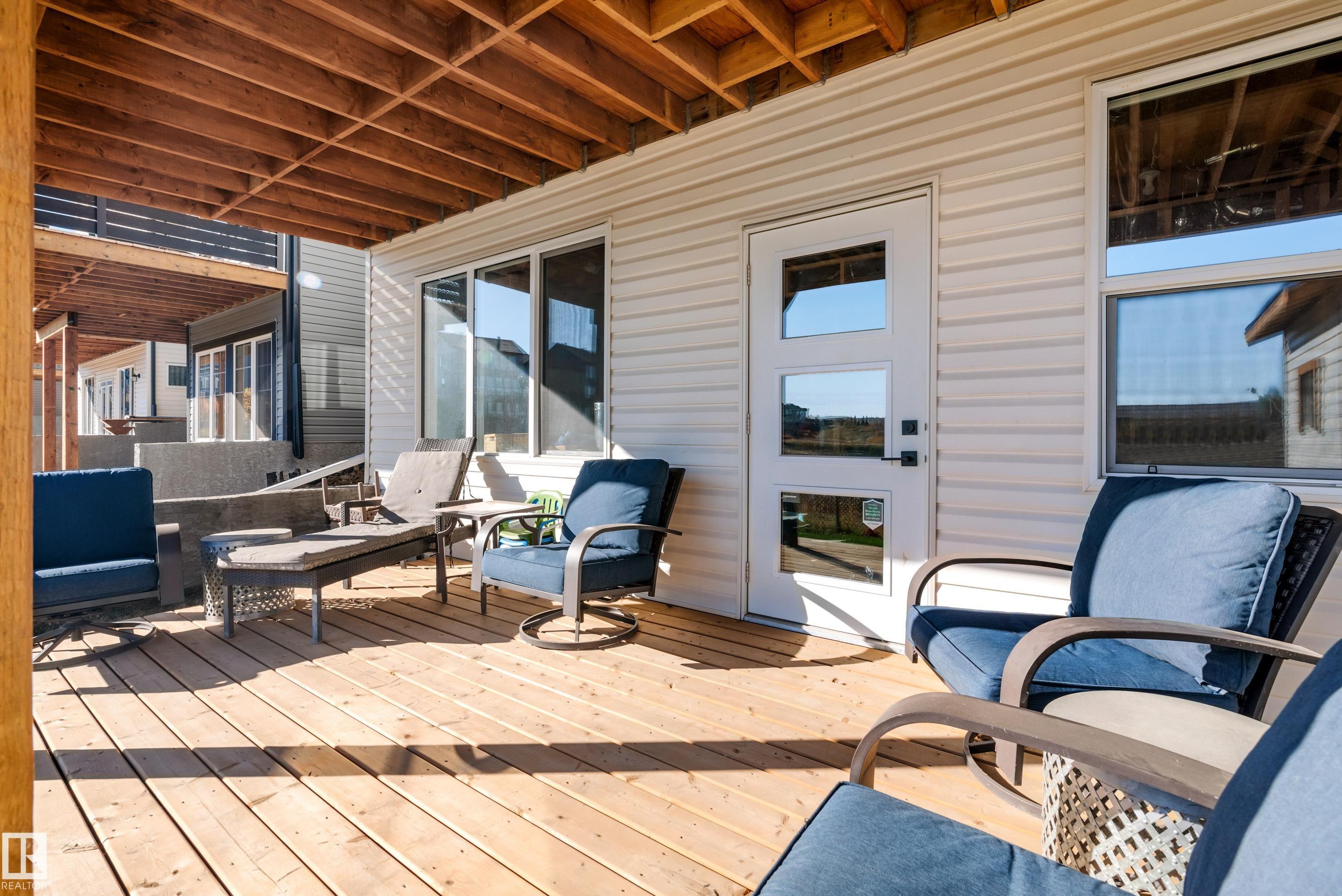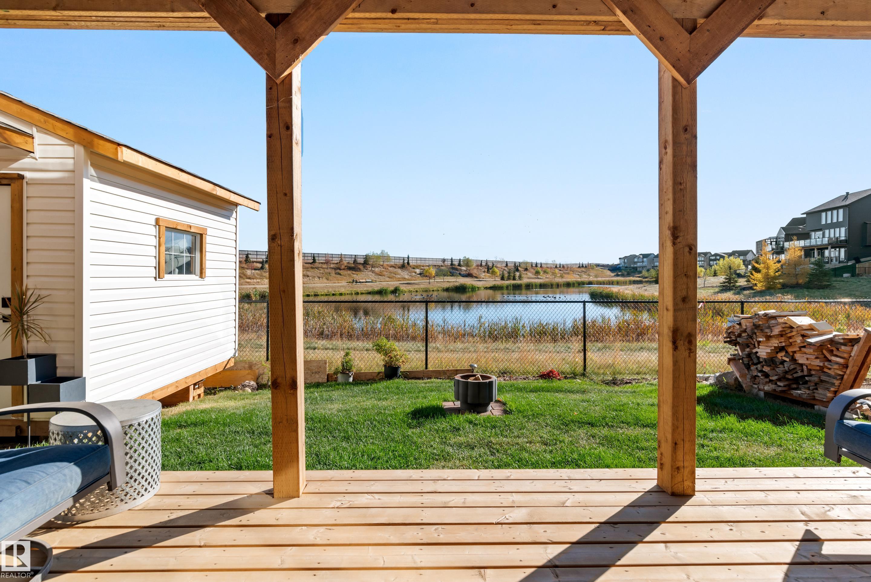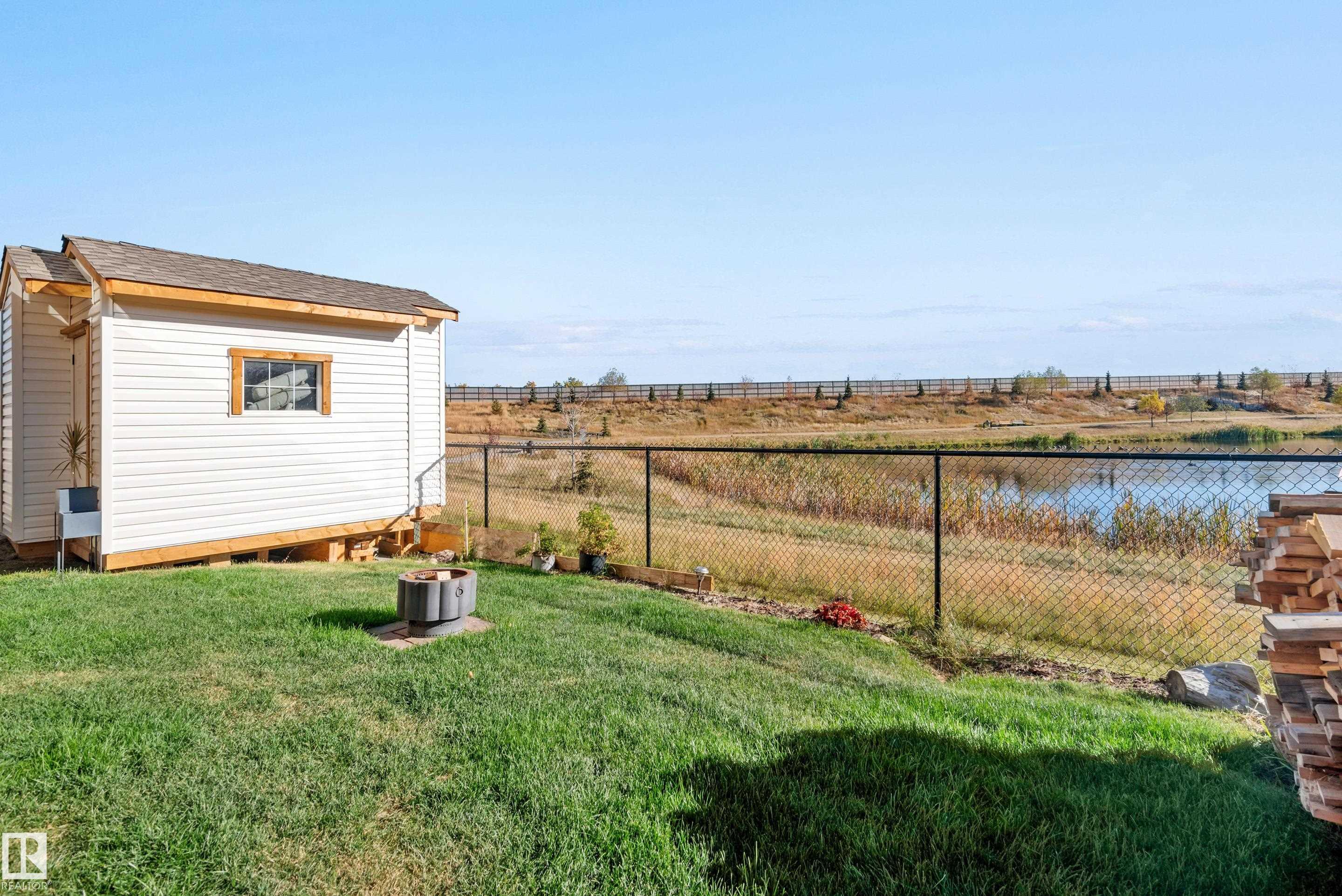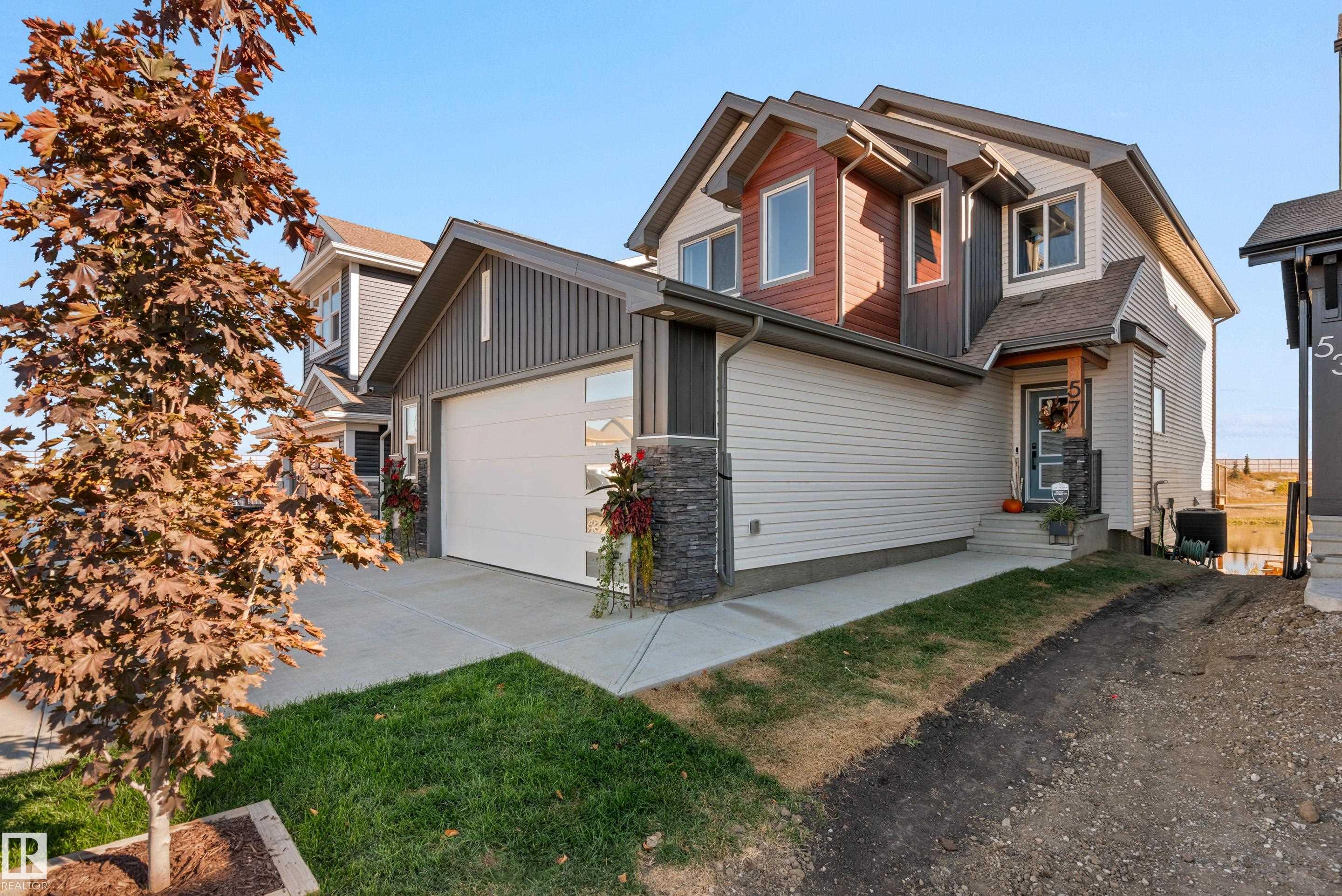 Backing onto the lake and facing the park, this exceptional 2-storey home features a modern farmhouse design with 2,159 sq. ft. plus a partially finished walkout basement. The main floor offers a stunning kitchen with high-end appliances, quartz countertops, walk-through pantry, and spacious dining area. Additional features include vinyl plank flooring, flex room/office, powder room, and bright living room with electric fireplace. Upstairs offers a bonus room, new carpet (to be installed), 3 bedrooms, 4-piece bath, and laundry room with sink. The primary suite includes a luxurious 5-piece ensuite and walk-in closet. The walkout basement is framed for a future bedroom, bathroom, wet bar, and fireplace. Enjoy beautiful sunrise views from the large deck. Fully fenced and landscaped yard with dog run and $20K custom shed. Oversized (23'x26') heated garage with custom shelving, cabinetry, and 8-ft door. A perfect blend of luxury, location, and lifestyle.