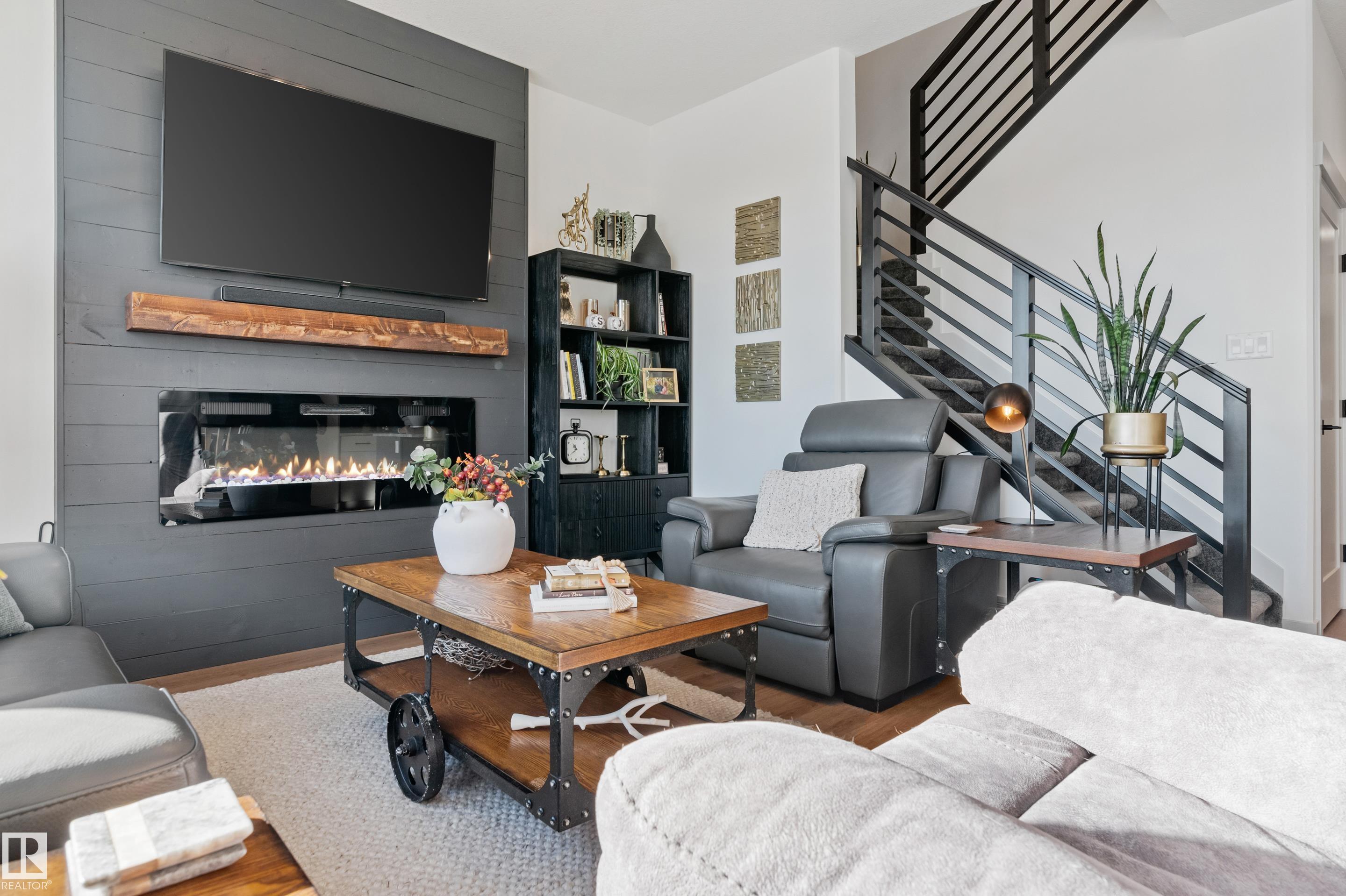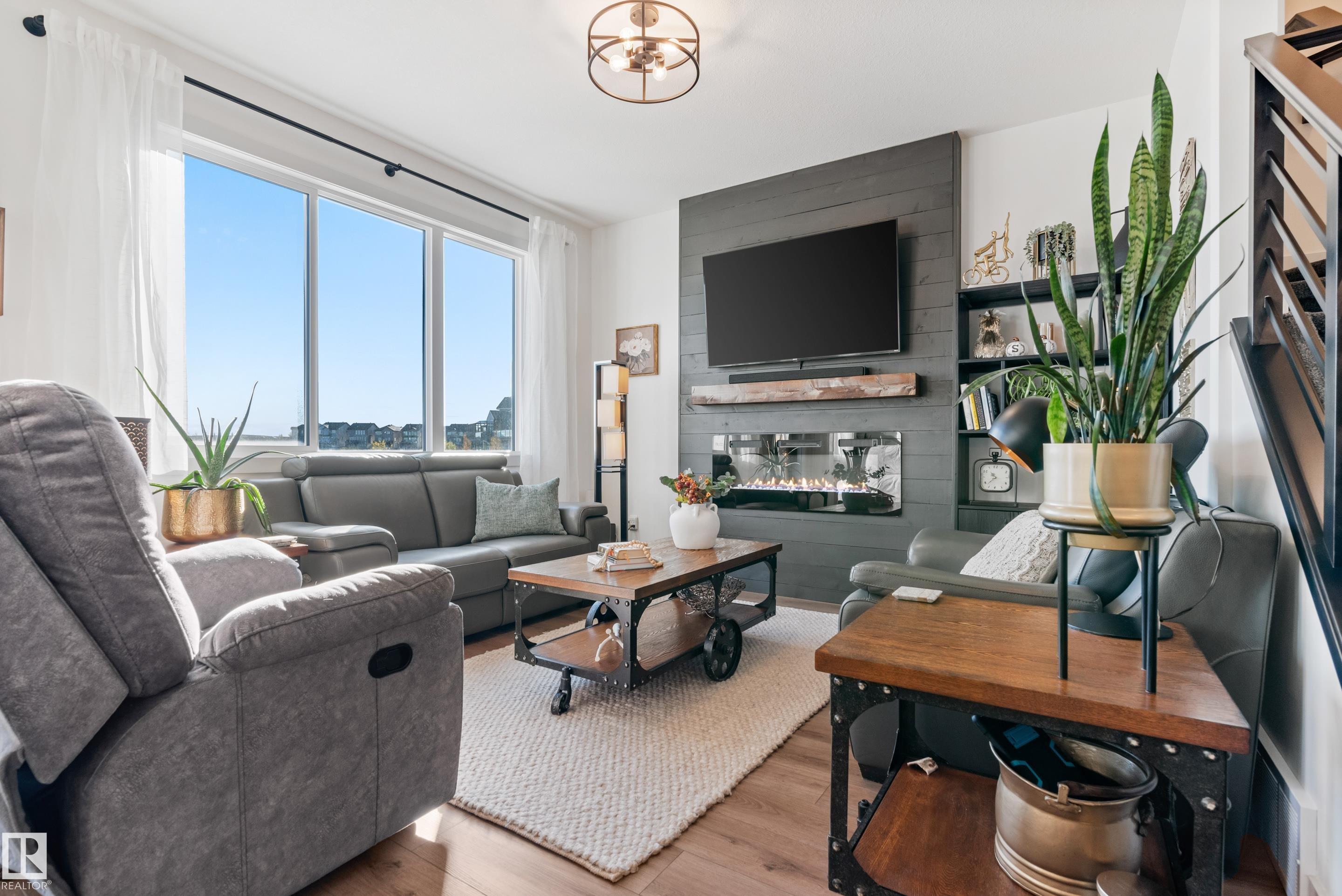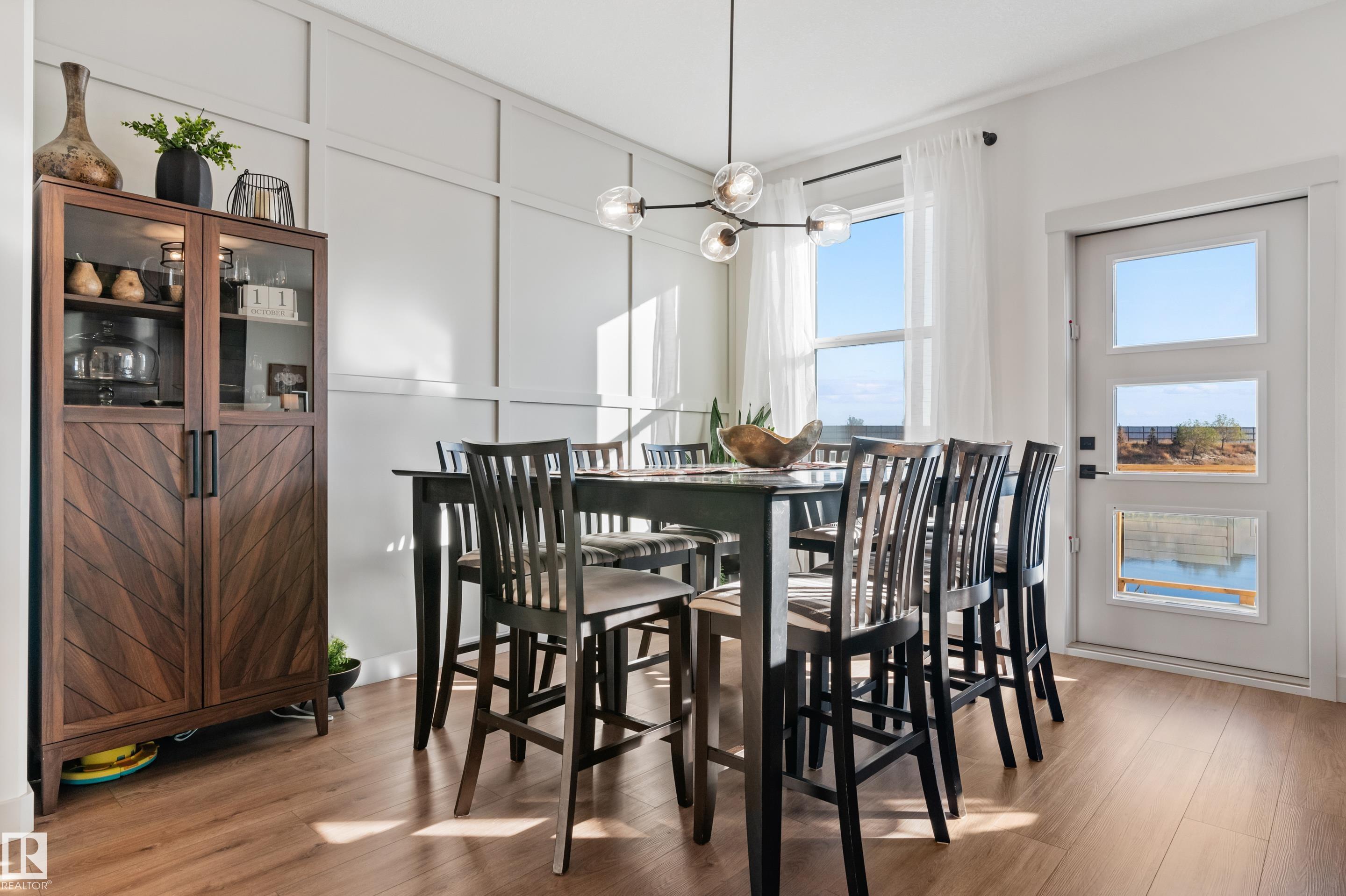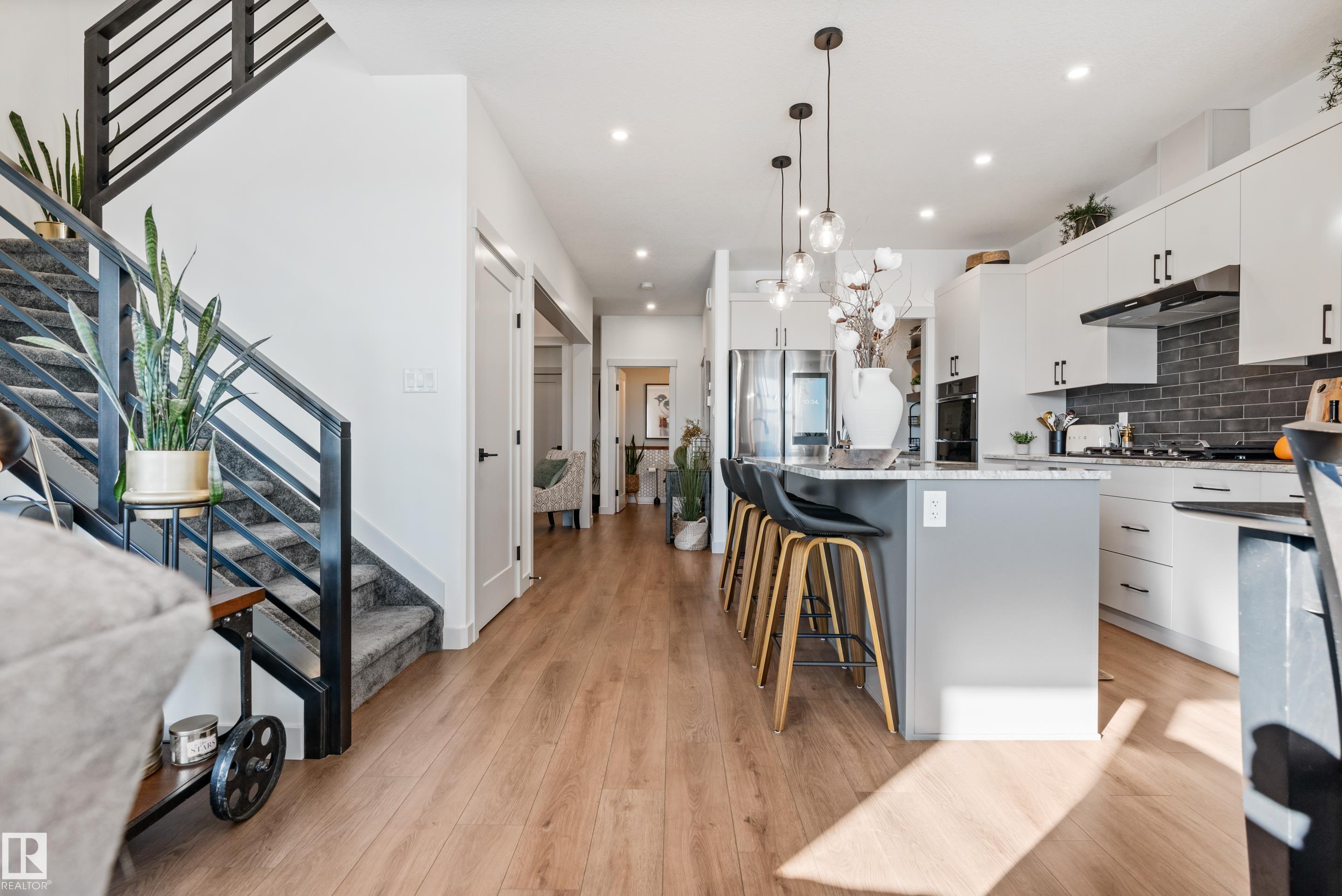 Backing onto the lake and facing the park, this exceptional 2-storey home features a modern farmhouse design with 2,159 sq. ft. plus a partially finished walkout basement. The main floor offers a stunning kitchen with high-end appliances, quartz countertops, walk-through pantry, and spacious dining area. Additional features include vinyl plank flooring, flex room/office, powder room, and bright living room with electric fireplace. Upstairs offers a bonus room, new carpet (to be installed), 3 bedrooms, 4-piece bath, and laundry room with sink. The primary suite includes a luxurious 5-piece ensuite and walk-in closet. The walkout basement is framed for a future bedroom, bathroom, wet bar, and fireplace. Enjoy beautiful sunrise views from the large deck. Fully fenced and landscaped yard with dog run and $20K custom shed. Oversized (23'x26') heated garage with custom shelving, cabinetry, and 8-ft door. A perfect blend of luxury, location, and lifestyle.