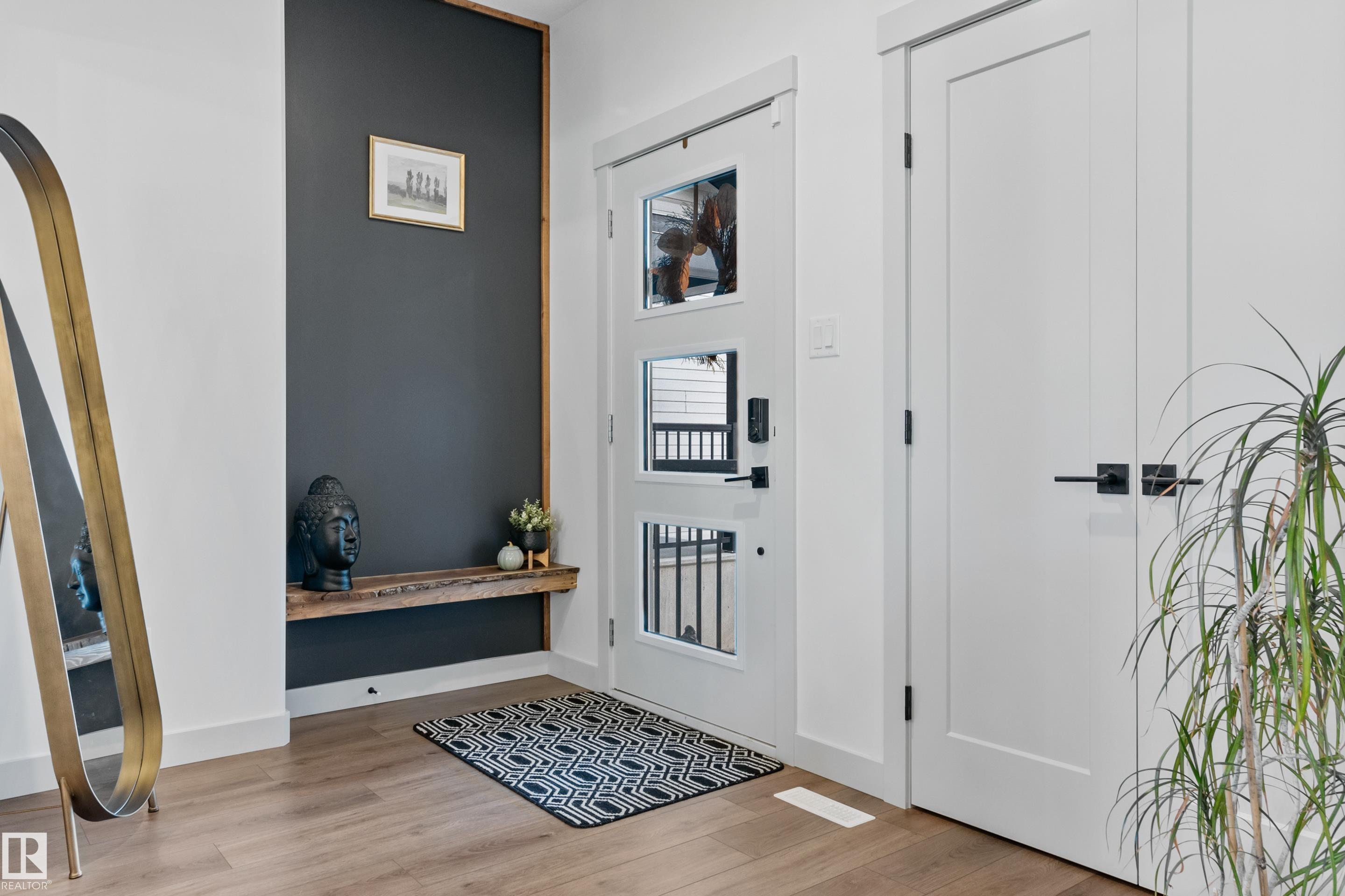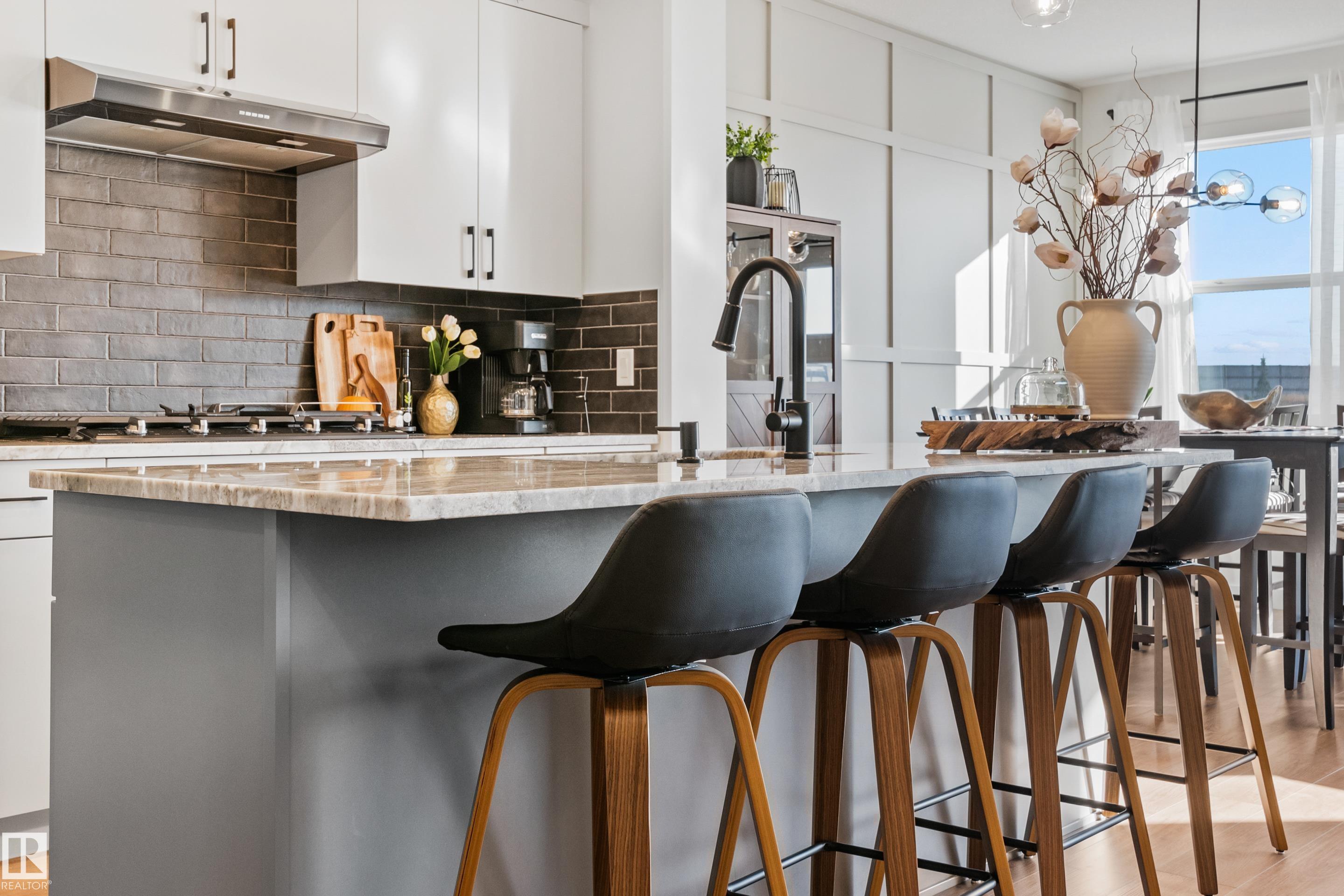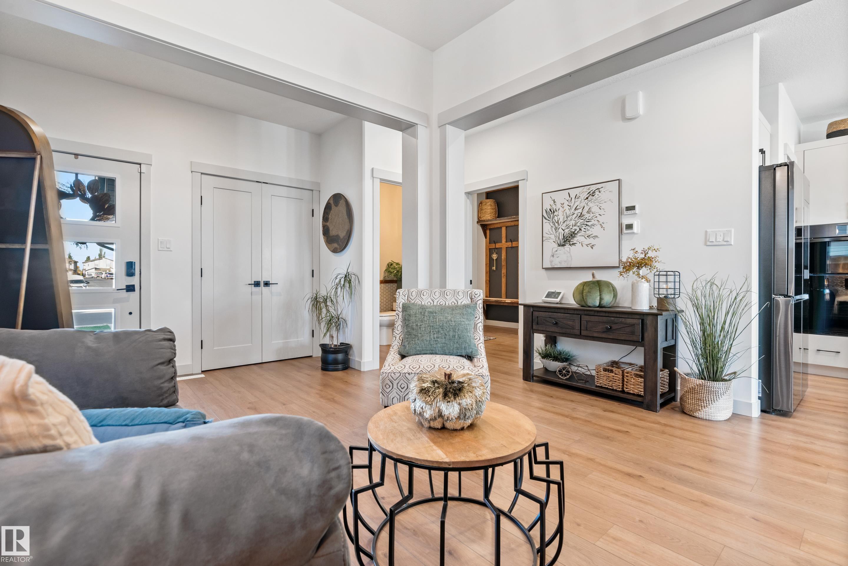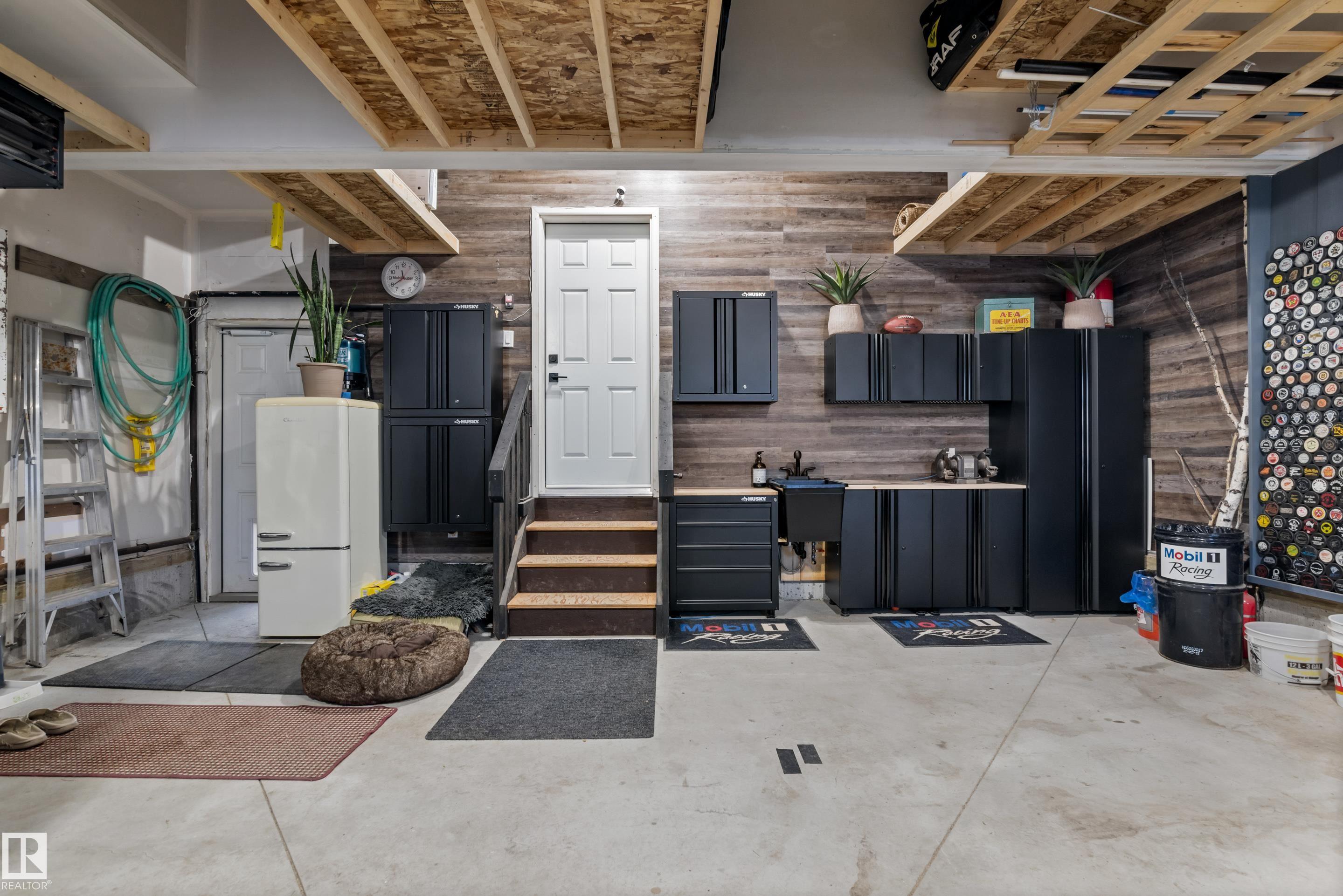 Backing onto the lake and facing the park, this exceptional 2-storey home features a modern farmhouse design with 2,159 sq. ft. plus a partially finished walkout basement. The main floor offers a stunning kitchen with high-end appliances, quartz countertops, walk-through pantry, and spacious dining area. Additional features include vinyl plank flooring, flex room/office, powder room, and bright living room with electric fireplace. Upstairs offers a bonus room, new carpet (to be installed), 3 bedrooms, 4-piece bath, and laundry room with sink. The primary suite includes a luxurious 5-piece ensuite and walk-in closet. The walkout basement is framed for a future bedroom, bathroom, wet bar, and fireplace. Enjoy beautiful sunrise views from the large deck. Fully fenced and landscaped yard with dog run and $20K custom shed. Oversized (23'x26') heated garage with custom shelving, cabinetry, and 8-ft door. A perfect blend of luxury, location, and lifestyle.