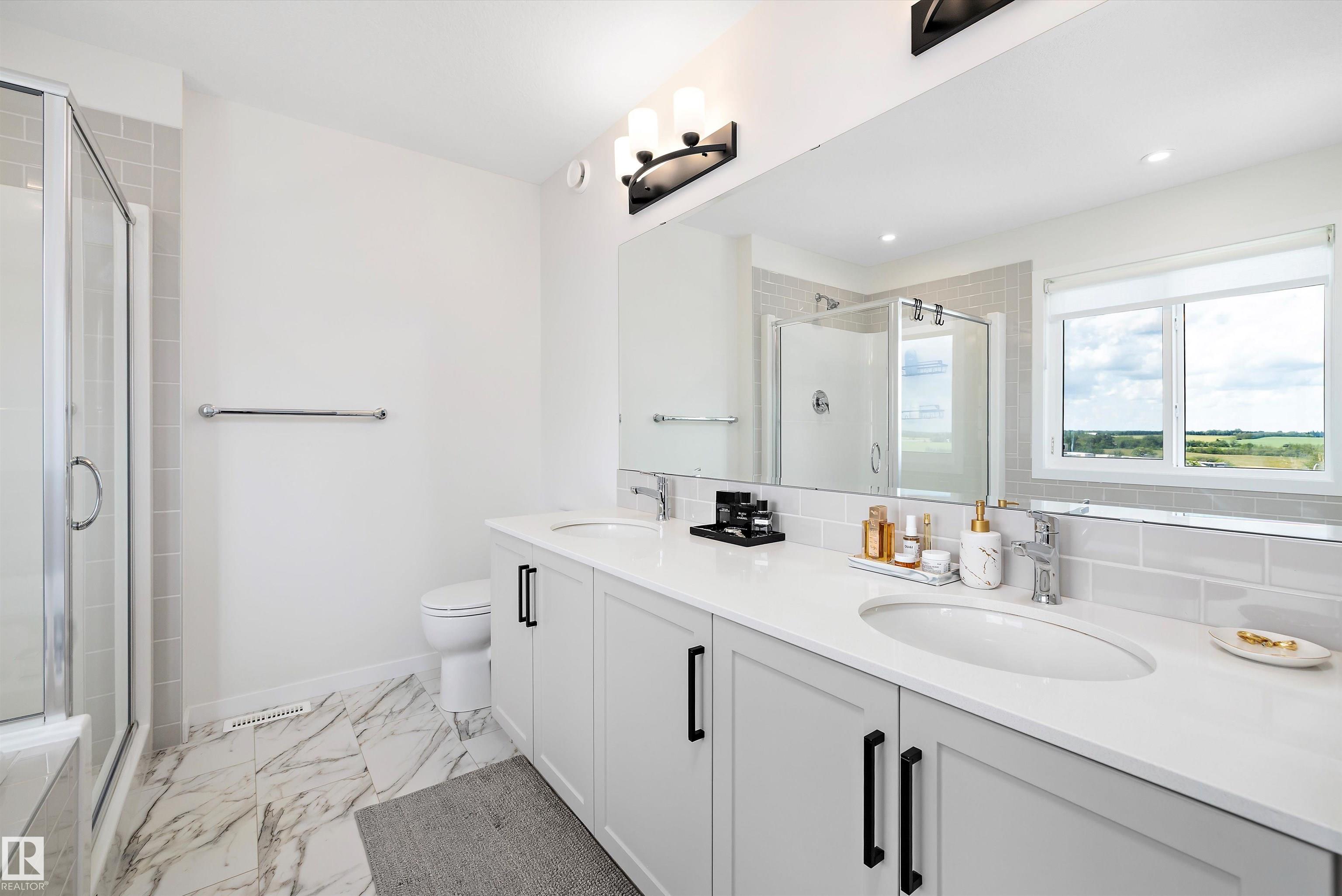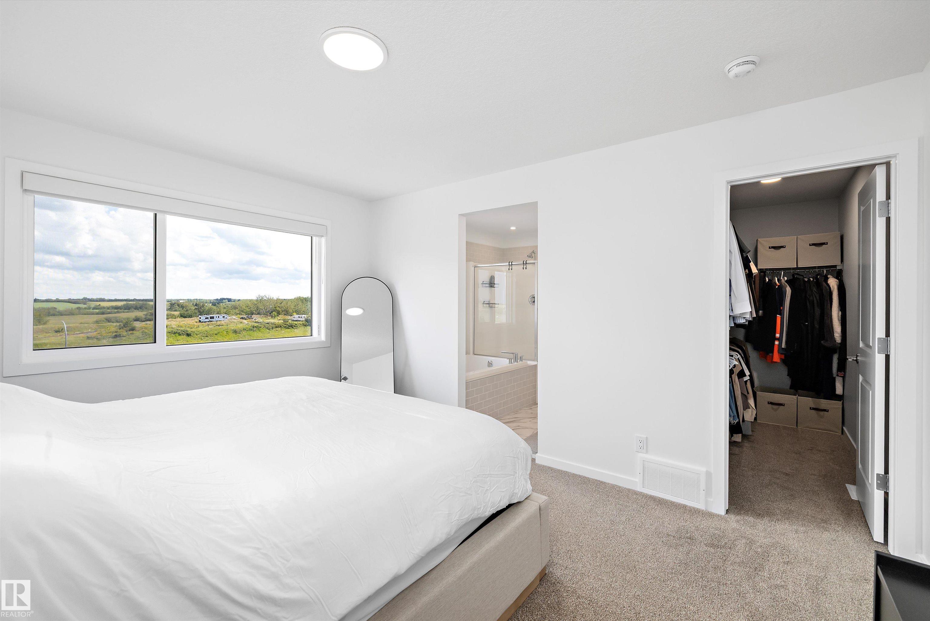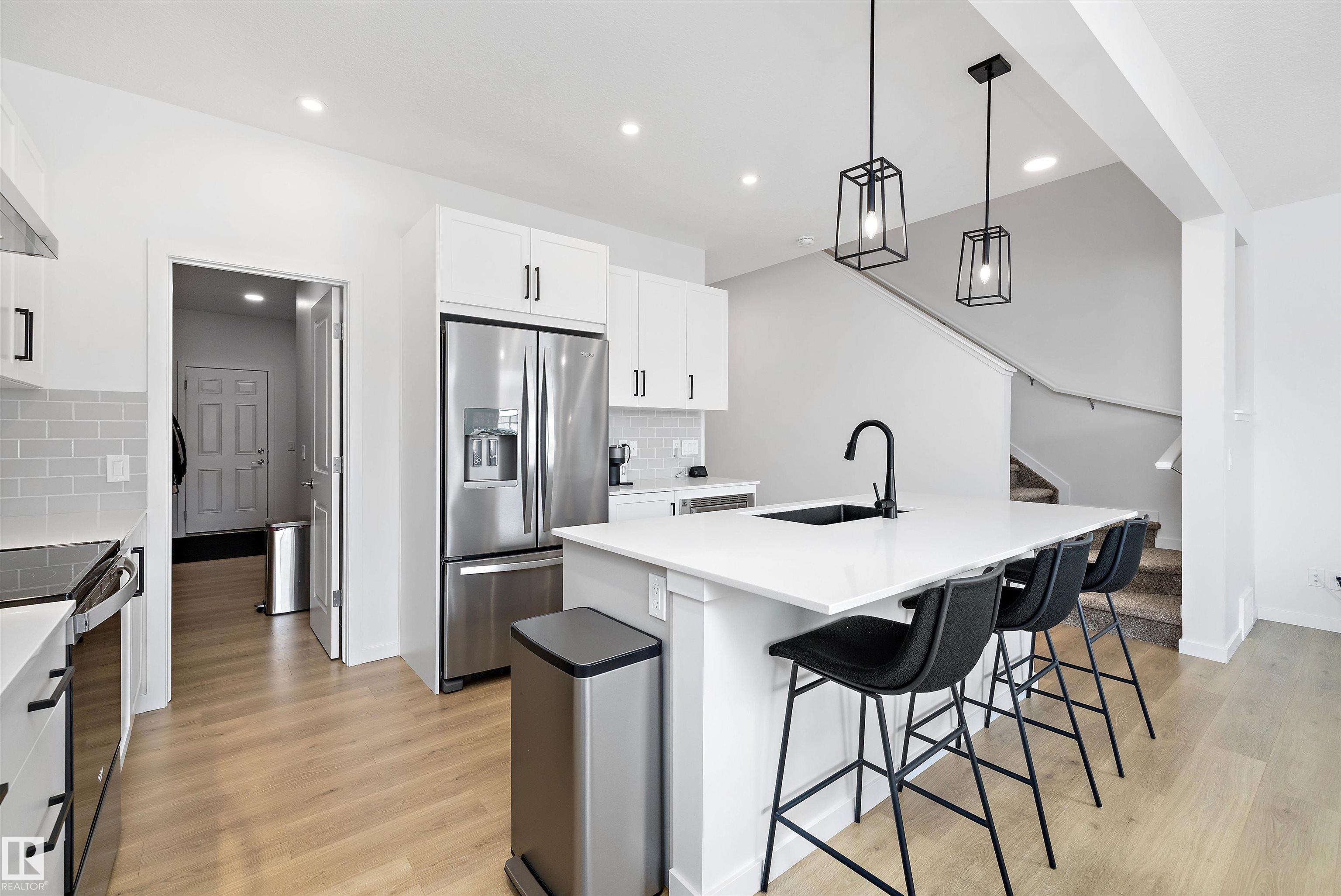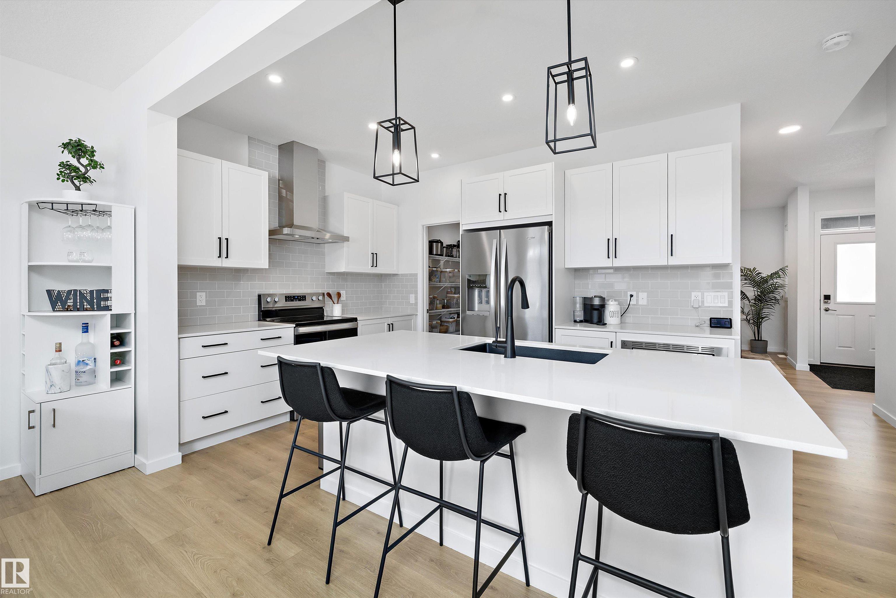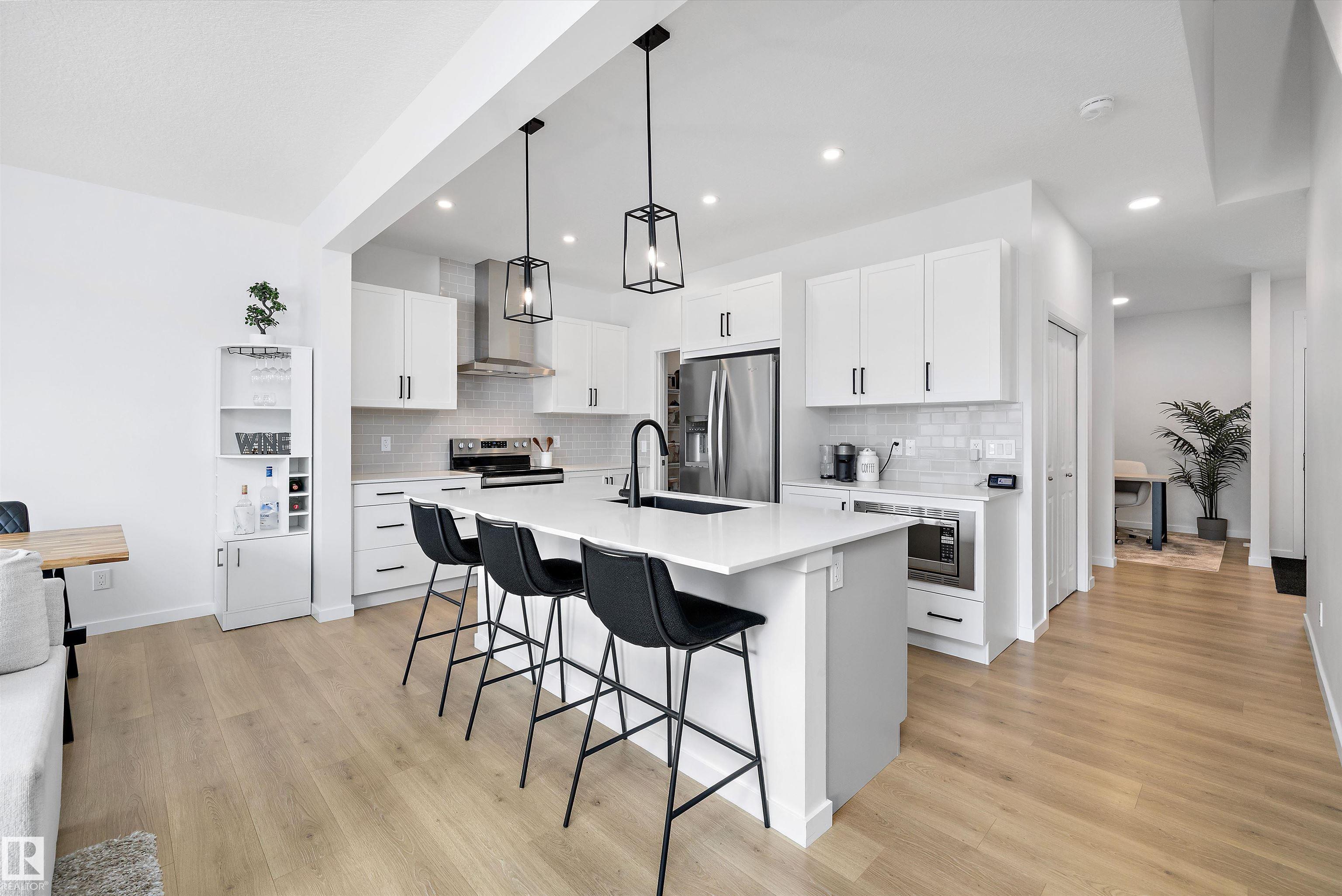 Located in the sought after community of Summerwood. This beautifully designed home offers the perfect blend of function, efficiency, and style. From the welcoming landscaping to the double attached garage with an EV charger, every detail is built for convenience. Step inside to a bright foyer and main floor office, ideal for remote work. The open concept living area is perfect for entertaining, featuring a large island, granite sink, stainless steel appliances, quartz countertops and lots of cabinetry space. Smart home features include Alexa-controlled lighting and powered Hunter Douglas blinds. Outside, enjoy the spacious vinyl-covered deck and Ring floodlight. Upstairs offers three bedrooms, a bonus room, and laundry, with a luxurious primary suite featuring a spa-like ensuite and walk-in closet. Stay cool with central A/C and save with 12 solar panels and a tankless hot water system. Located in a quiet, family-friendly neighbourhood close to schools, parks and shopping centres.