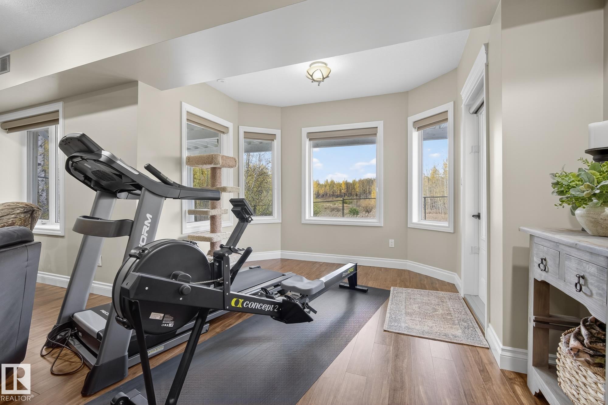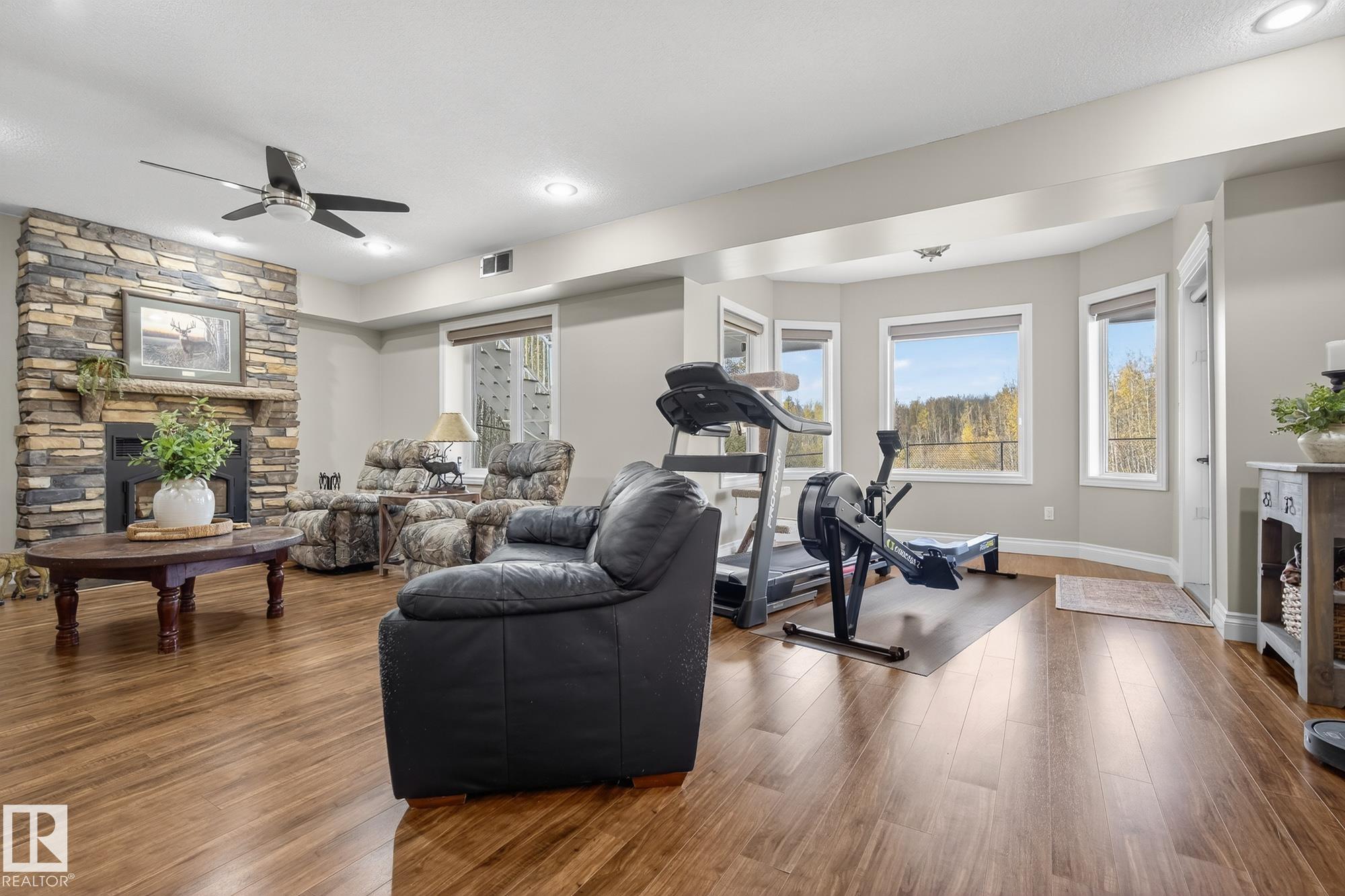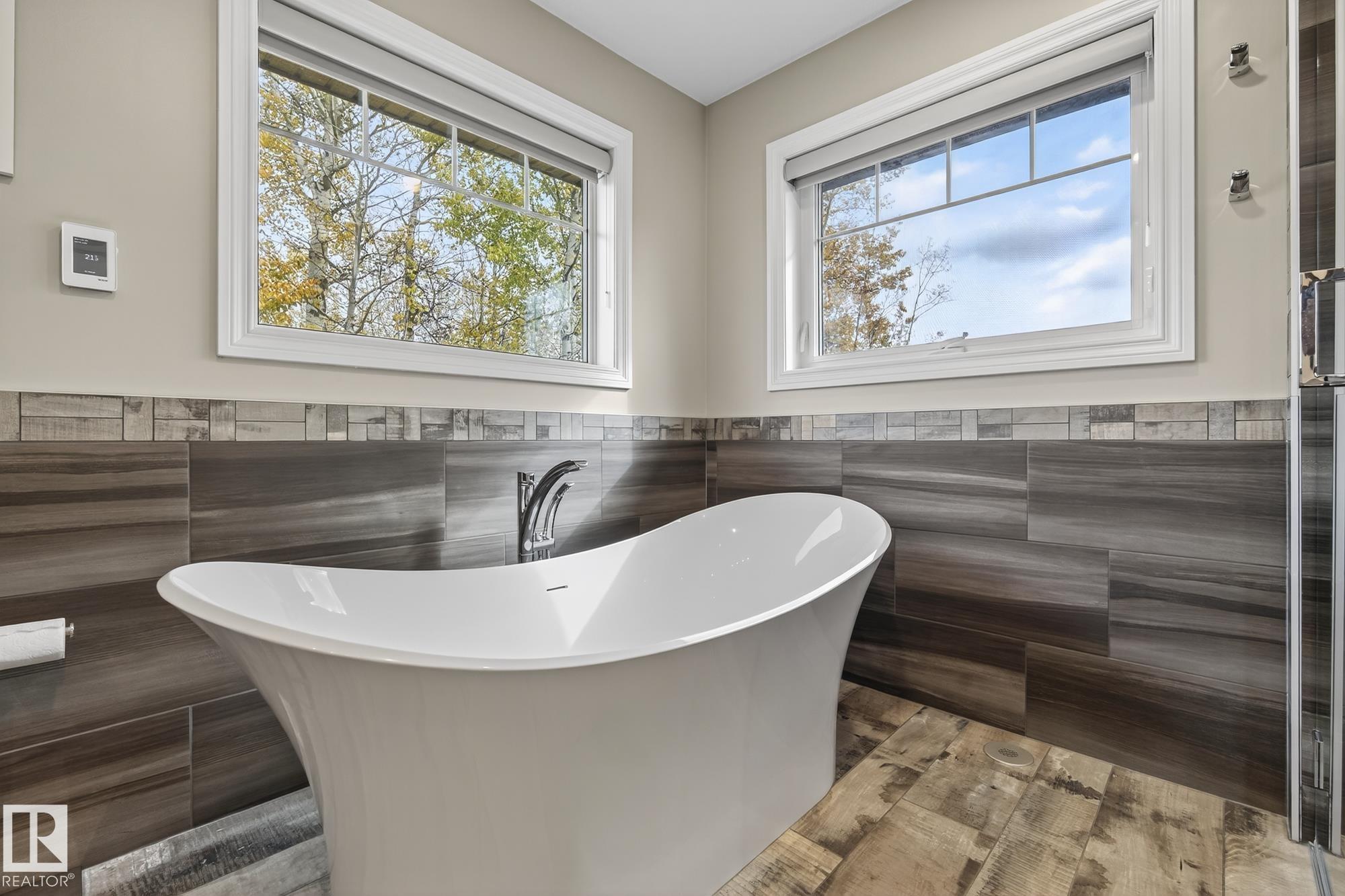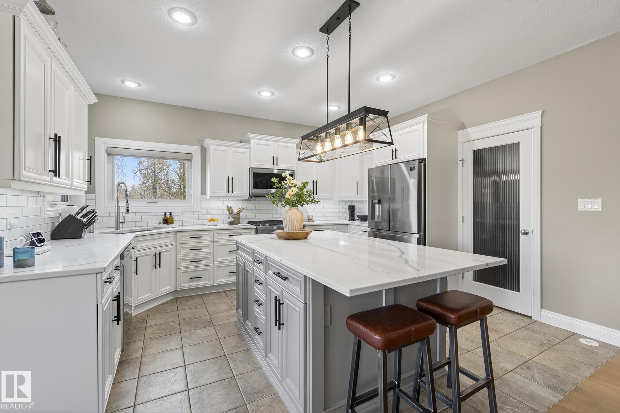 AMAZING 1.5 storey WALKOUT w/ triple att'd garage ( heated floors ) and 60x40 SHOP on a SECLUDED 21.33 ACRES just 25 minutes from Edmonton or Sherwood Park. This 2007-built 1952 sq ft (plus fully finished walk-out level) has been COMPLETELY RENOVATED w/ HIGH QUALITY UPGRADES! The main floor offers a bright living-room with gas f/p, dining area with deck access, a GOURMET KITCHEN w/new cabinetry, quartz countertops, eat-up island, high end appliances & fixtures, and a huge walk thru pantry! The main level is completed with a den, second bedroom, 4 pce bath & main floor laundry rm. Upper level consists of an INCREDIBLE PRIMARY SUITE w/ lrg walk-in closet and a GORGEOUS 5 PCE ENSUITE w/ HIGH END FINISHES! Walkout level is completely finished with 2 additional bedrooms, a 3 pce bath, storage rm, MASSIVE rec rm with F/P & patio access. Heated flooring thru-out lower level, garage, kitchen & bathrooms. Other features incl ICF foundation in both dwelling & shop, HI-velocity furnace & newer HIGH QUALITY Boiler.