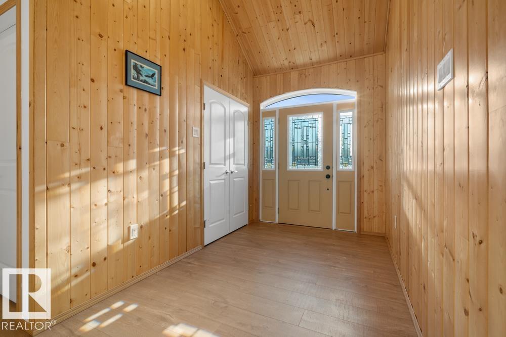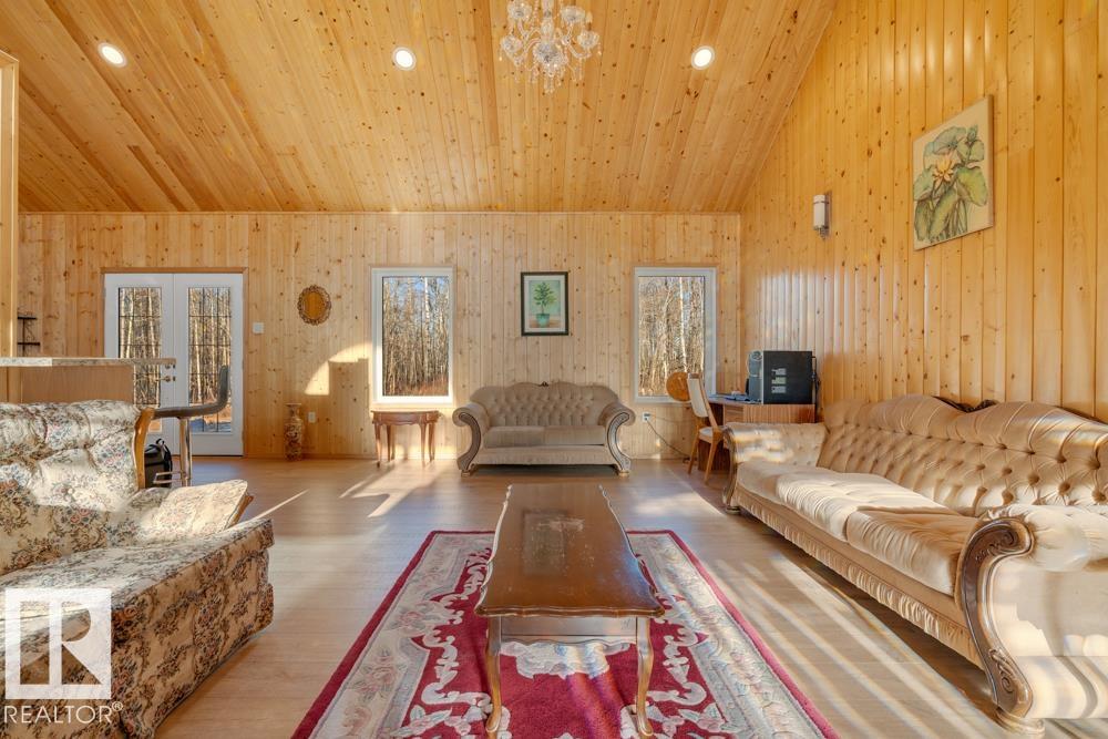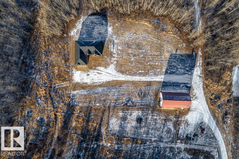 Discover 72 acres of peaceful PRIVACY with this beautifully crafted bungalow offering over 1,800 sq. ft. of OPEN-CONCEPT LIVING. Vaulted wood ceilings, abundant natural light, and cozy in-floor heating enhance comfort year-round. The main floor offers a spacious and inviting layout, featuring a generous PRIMARY SUITE with a good sized WIC and 5-PC ENSUITE, two additional bedrooms, a dedicated dining area, and main-floor laundry with direct access to the OVERSIZED HEATED DOUBLE GARAGE. The lower level has framing for future bedrooms, a large REC AREA, bathroom, and storage--ideal for families or multi-generational needs. The land blends open field and treed areas, plus a solid 30x60 structure with a metal roof and hayloft, perfect for HORSES, EQUIPMENT, or repurposing. Nestled in a scenic and tranquil location near BLACKFOOT RECREATION AREA, STRATHCONA WILDERNESS CENTRE, and ELK ISLAND PROVINCIAL PARK, this home grants easy access to trails, cross country skiing, hiking, riding, and abundant wildlife.